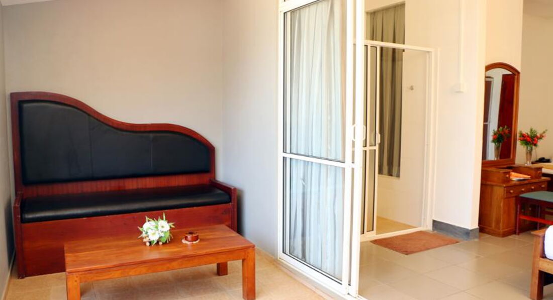 У нас был забронирован номер на второй линии, на месте мы договорились с хозяином отеля о делюксе с балконом и видом на океан (дешевле чем у туроператора и по официальному прайсу). В номере было все необходимое: кондиционер, вентилятор, телевизор, холодильник и сейф. Уборка в номере производилась каждый день, постельное белье меняли по мере того, как мы его пачкали (несколько раз ели фрукты в кровати. После чего белье меняли на следующий день). Только один раз мы спали на одном и том же белье 3 ночи. Из ванных принадлежностей: мыло и 2 шампуня (примерно 100-150 мл). Завтрака сытные и вкусные: фреш, кофе/чай, омлет/яичница/глазунья/каша, бекон/сосиськи, фруктовая тарелка, джем, тосты и йогурт (в меню он не указан). Завтрак разрешали брать с собой в номер, даже когда мы просыпали все равно нас кормили, а когда мы рано уезжали на поезде на экскурсии, то заранее просили раньше 7 утра покормить нас. Сейф есть в номере, а также на ресепшене (мы разделили деньги и ценные вещи в эти 2 сейфа). Все было в ценности и сохранности. Вообще я не где не видела такого услужливого персонала. Лежаки выносят на пляж, как только ты идешь в сторону пляжа. Стелят матрасы и полотенца. Охранник сидит рядом и смотрит за порядком и безопасностью постояльцев. После 22 выход на пляж закрывают, после темноты купаться в океане нельзя, но до 22 можно купаться в бассейне. На ужин столы вынося на улицу и ставят свечки. Можно самим купить морепродукты и в отеле вам их приготовят. Когда вечером вы приезжаете или приходите в отель вас тут же встречают с фонариком охранник. Вообще ночной охранник очень улыбчивый и услужливый мужчина. Это он со всеми туристами ловит крабов на пляже. Во время отдыха вам не чего не придется делать самим, все за вас сделает персонал отеля (чаевые они кстати не просят, один раз нас их даже возвращали 3 раза). Вдоль берега проходит железная дорога, лично нас и всех остальных постояльцев отеля это не смущало, ночью мы прекрасно спали под шум океана. Единственный минус состоит в том, что до ближайшего ресторана или супер маркета вам придется ехать. Всем советую делать это на автобусе. Автобусы ездят гораздо быстрее тук туков и стоят очень дешево.