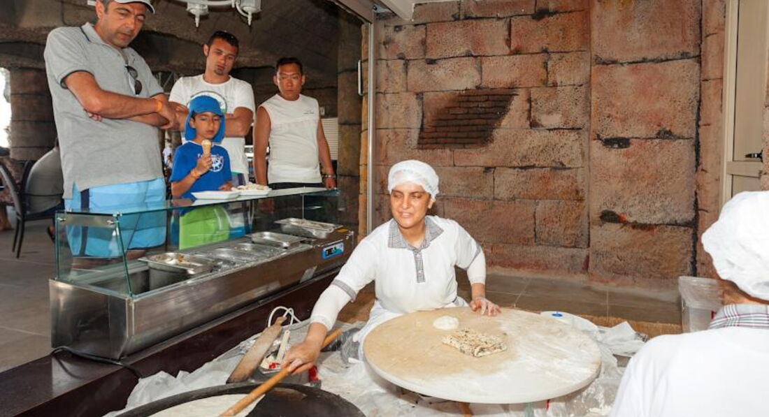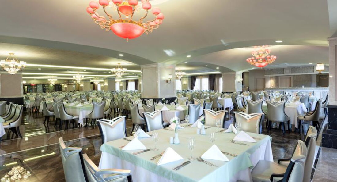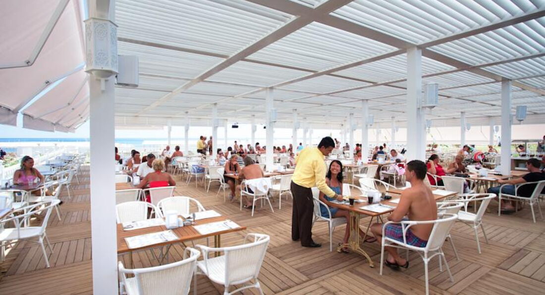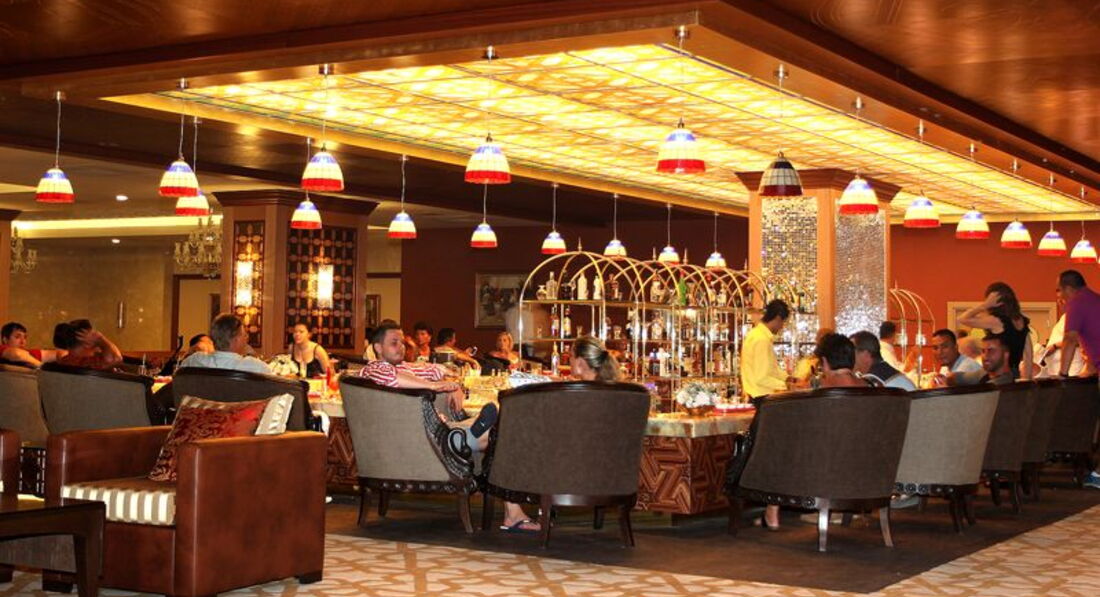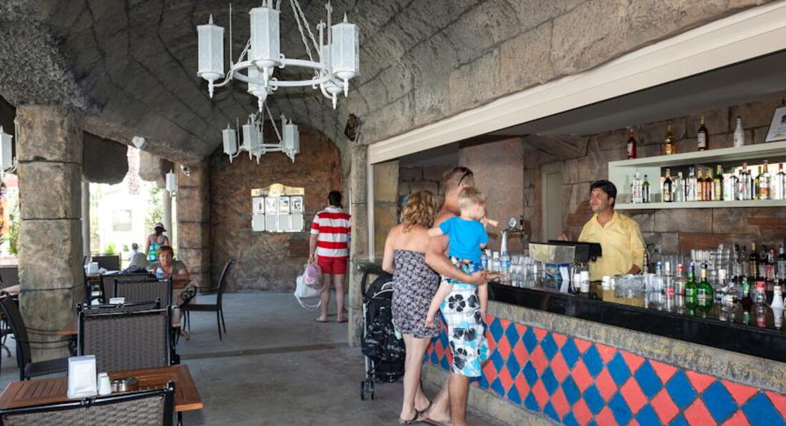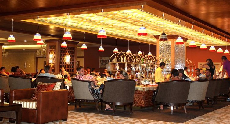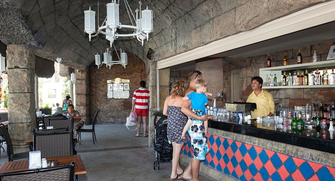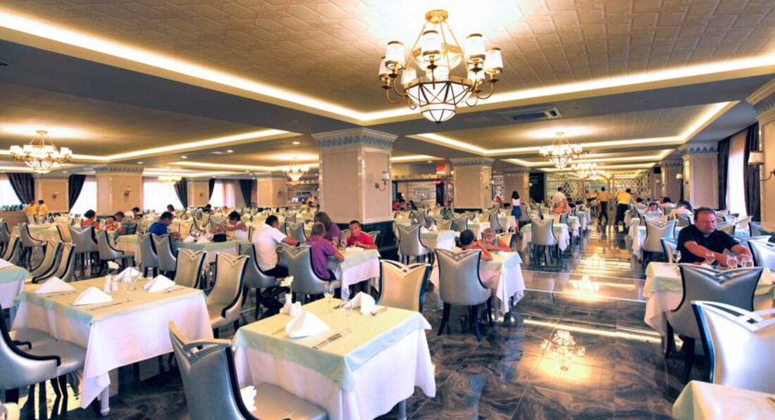 Бари та ресторани: головний ресторан розрахований на 750 осіб (критий, з кондиціонером, літня тераса, дитяче меню, дієтичне меню, дитячі стільці); бар на пляжі (10:00-18:00), лобі-бар (10:00-24:00), бар біля басейну (10:00-24:00), кафетерій (16:00-24:00), диско-бар (23:00-03:00), Amphi-бар (10:00-21:30), снек-бар (10:00-24:00), боулінг-бар (16:00-24:00) ) та ін. 5 ресторанів A la Carte: італійський, турецький, рибний, мексиканський, далекосхідний - відвідування безкоштовно 1 раз на тиждень, за попередньою резервацією.