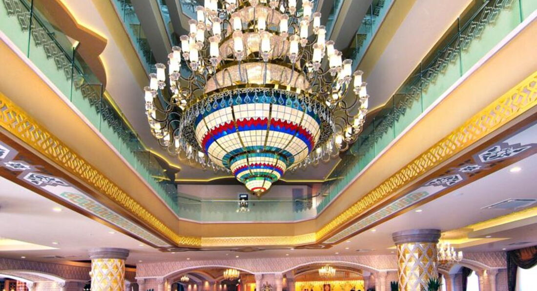 Увидеть горящими шикарные люстры в холле не мечтайте, кондиционеры в холле так же постоянно выключены, как и в основном ресторане.