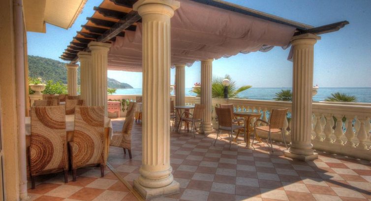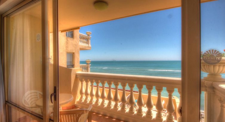 Из номеров sea view замечательный вид на море с большого балкона. Нам повезло и несколько раз мы наблюдали с балкона в море дельфинов, приплывавших покрасоваться перед отдыхающими. Номера, именуемые park view, не рекомендую - будет не парк, а песчаные насыпи подножия гор с дворовым хоз.инвентарем.