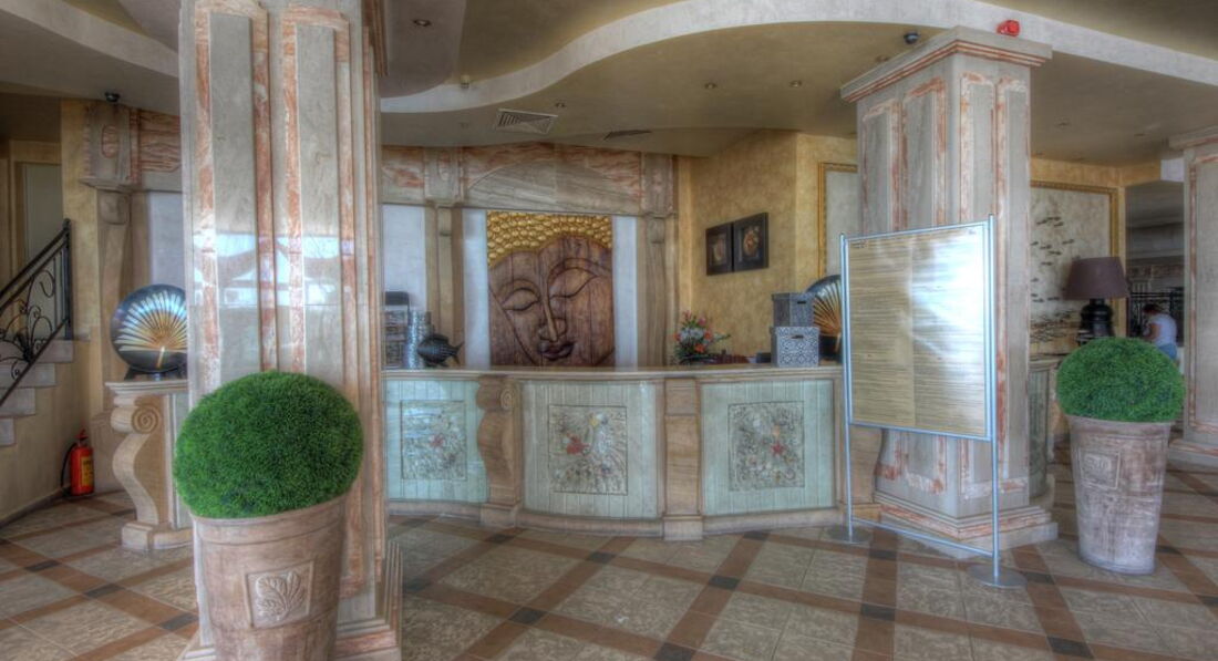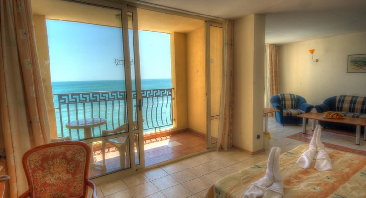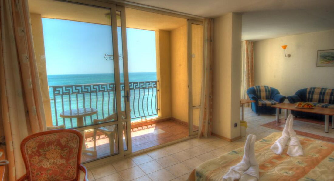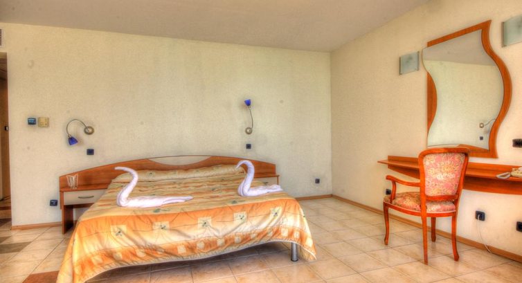 Отдыхаем здесь в данный момент. Приехали 18 июня вечером, имела переписку с отелем, номер оплатила с видом на море. Почему то не могли найти бронь 2 часа. Потом нашли, заселили в 325 номер. В номере одна розетка) в ванной розетки нет. На балконе ласточки свили три гнезда, все за...но{удалено модератором} извините за выражение, но эти гнезда не убирают. Весь балкон в г..не{удалено модератором} . Столовая. Мы без претензий, один вид мяса и курица, нам хватало, мы две девочки едим мало) бары.... вот это да... Болгария знаменита вином... но здесь нет вина... даже цвет красного вина он... розовый и пить это невозможно. На пляже душа нет, поэтому весь песок в бассейне. Решайте сами, ехать или нет. Зря потраченные деньги. Спасатели не работают. Сегодня утонул человек. Ищут люди на лодке.