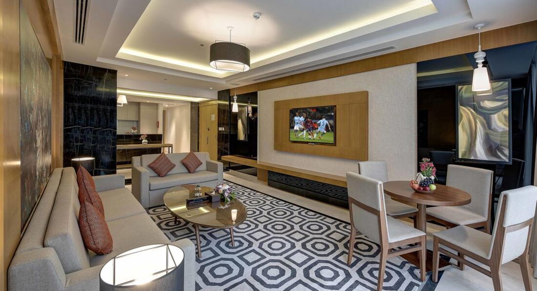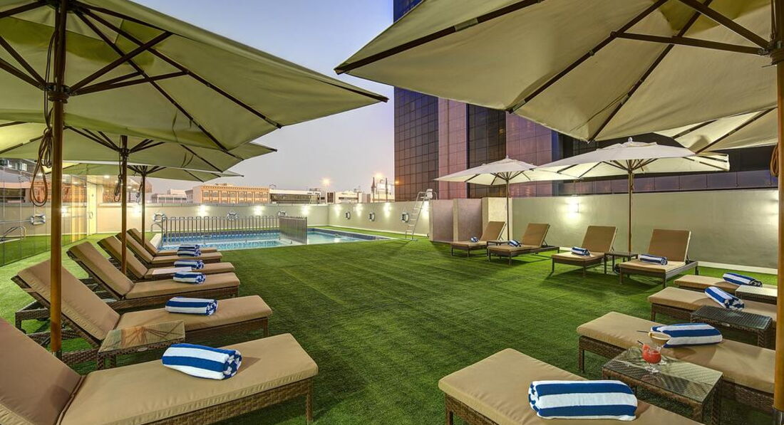 Територія та послуги: • Ресторан Oasis (Інтернаціональна кухня 24 години) • Кафе All The Perks (24 години) • Відкритий басейн площею 51 кв.м., температура води контролюється • Дитячий басейн • 1 конференц-зал (платно, до 60 чол.) • Магазин • Обмін валюти • Інтернет кафе • Паркування (безкоштовно) • Wi-Fi на всій території готелю • Пральня • Оренда автомобіля Розваги та спорт: • Тренажерний зал (безкоштовно) • Фітнес-центр (безкоштовно) • Більярд безкоштовно • Ігрова кімната • Сауна платно • Масаж платно • Джакузі платно Для дітей: • Дитячий басейн • Дитячі стільці у ресторані • Дитяче ліжко (за запитом, безкоштовно) • Няня платно Живлення: • BB – сніданок • HB – сніданок, обід або вечеря (можна міняти) • FB – сніданок, обід та вечеря До оплати приймаються кредитні картки: Visa, MasterCard, American Express.