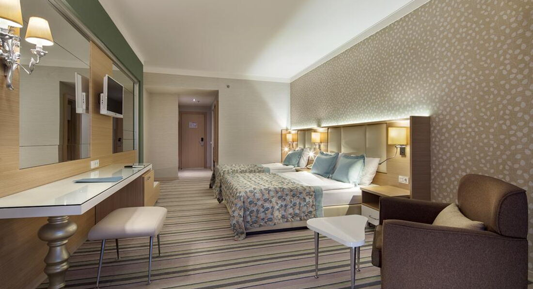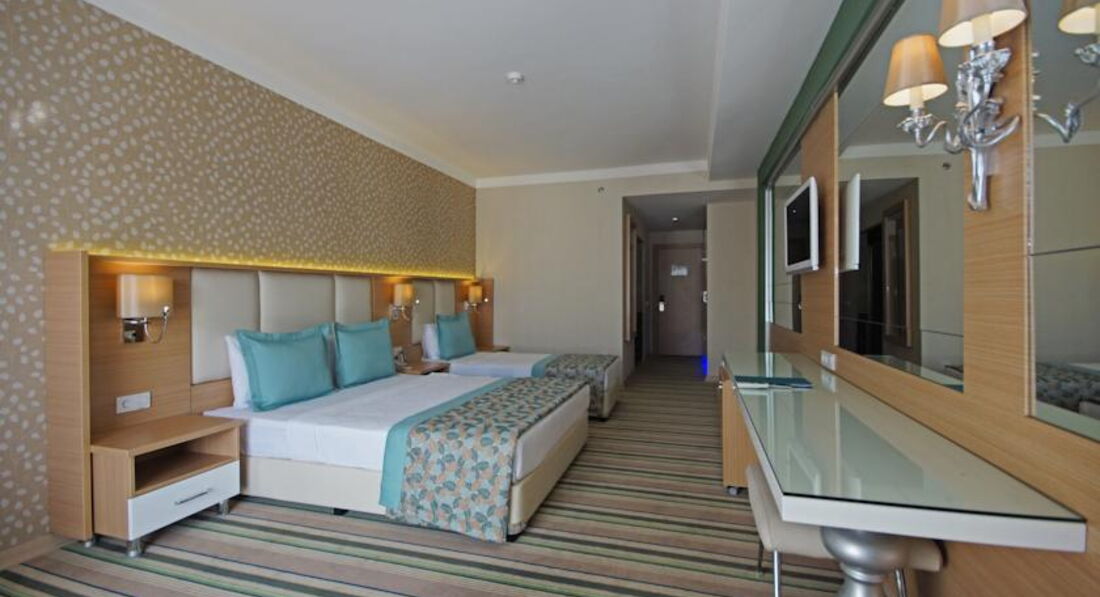 Полностью согласна с предыдущим отзывом. Была с ребенком (6 лет) в Турции в первый раз. Остановила выбор на этом отеле и не пожалела. Все отлично!! И номер большой и уютный, и питание и главное для меня,не надо было занимать лежаки с утра. Всегда были места и на пляже и около бассейнов. Для детей и взрослых отличные водные горки! Отель тихий, спокойный и чистый. Анимация - далеко не зажигалка, но наверно от того, что это немецкая сеть, а они шумно отдыхать не любят. Это совсем не испортило наш отдых, так как мне анимация не нужна) Пляж отличный - песок, вход в море мелкая галечка, очень удобно и мне и ребенку!
