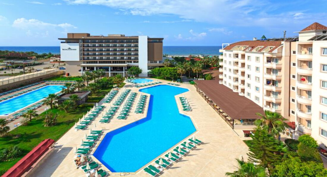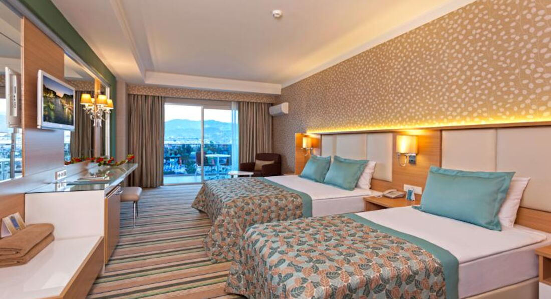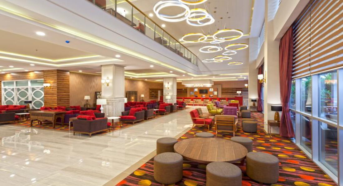 Поехали с мужем на майские праздники в Турцию в этот отель. Уж больно было холодно в Питере, а цена за неделю тепла оказалась мягко говоря приемлимой. Оператор был Туи, с ними все прошло гладко. Летели мы из Питера прямым рейсом Уральскими авиалиниями. Весь рейс была только одна мысль, что же вы такие не Аэрофлот. Персонал не просто хамливый, а очень хамливый, самолет старенький. Обратный рейс задержали больше чем на три часа, очевидно не по вине авиакомпании, но вряд ли это им должно помешать извиниться перед своими измученными клиентами.
