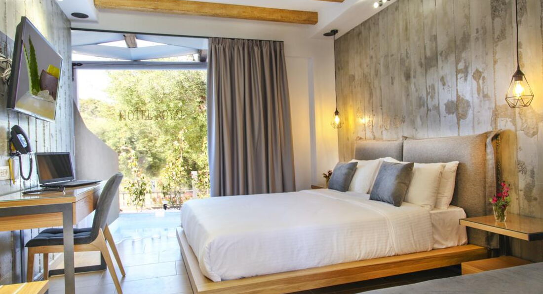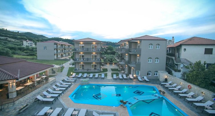 Готель розташований всього за 300 метрів від пляжу Поліхроно в Халкідікі. Готель Royal розташований за 95 км від міста Салоніки. П-ів Кассандра, 150 м від центру п. Поліхроно (50 м від центральної траси), 90 км від аеропорту "Македонія" м. Салоніки. 4 триповерхові будівлі з номерами та одна будівля з баром та рецепцією. Частково оновлено у 2018 р.