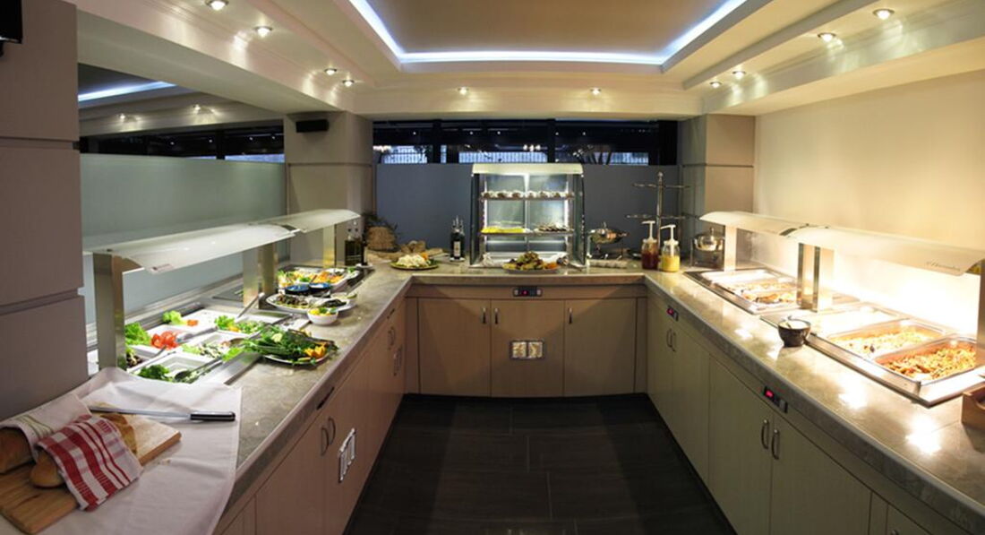• Прохолодні напої (Post mix), фруктові соки, фільтрована кава, чорна кава, фрапе, гарячий шоколад і чай, місцеве пиво (0,25), місцеве вино, місцеві напої - лікери, узо, ром, горілка, текіла, вермут, бренді; коктейлі