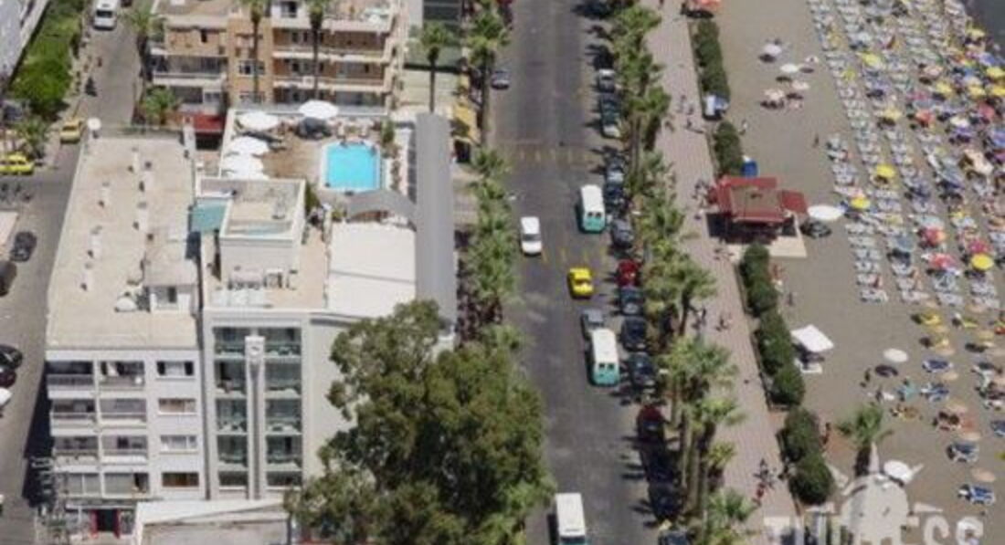 У отеля полностью отсутствует своя территория - он расположен в центре города. Прямо перед окнами отеля - улица Ататюрк стрит - очень оживлённая и шумная и днём и ночью.Но в номерах шума не заметно - по крайней мере за 14 ночей проживания от шума не мучались ни разу... может, потому что возвращались под утро и выключались за 10 секунд?... )))) Улица оживлённая, поэтому будте аккуратны, переходя её - я сам был свидетелем аварии прямо перед отелем в последний день проживания. Слева от отеля есть пешеходный переход - пользуйтесь им, - обычно автомобили останавливаются и вас пропускают. На крыше отеля - небольшой бассейн и лежаки для тех, кто не хочет идти на пляж. В 6 вечера лежаки убирают для того, чтобы расставить столы - ужин в отеле - на крыше, рядом с бассейном, под открытым небом, с потрясным видом на море. Просто СУПЕР!!!!