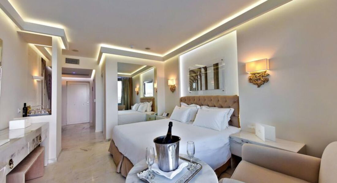 deluxe room with jacuzzi SV (вид на море, осн. ліжко - 2 односпальні або двоспальне, доп. - Софа, тераса з джакузі, макс. 2 +1 чол., 24-30 м2).