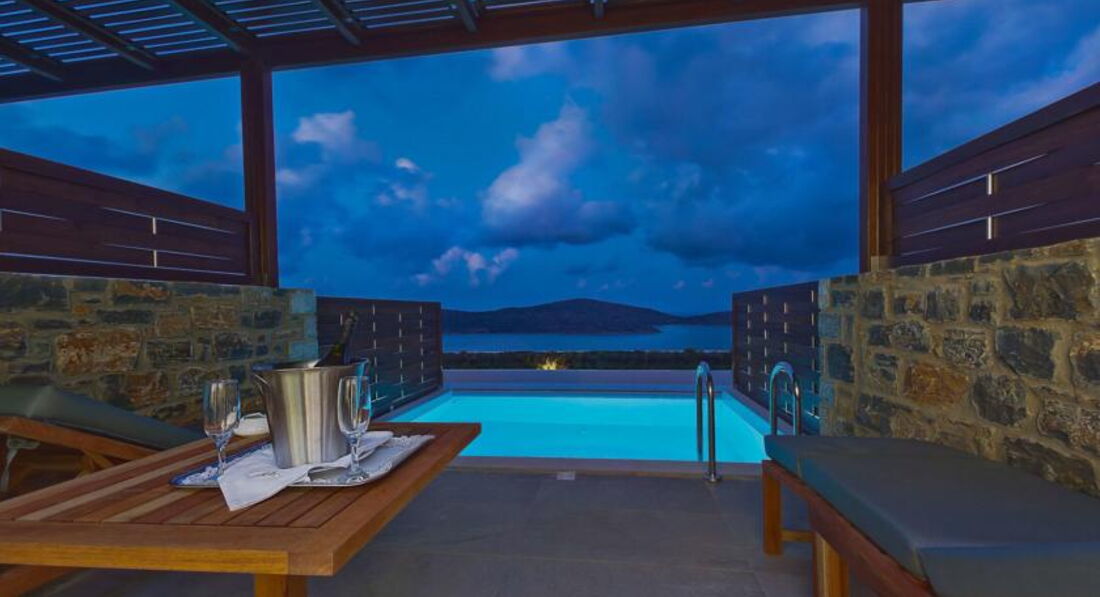 deluxe room private pool SV (вид на море, осн. ліжко – 2 односпальні або двоспальне, дод. – розкладне крісло (1,40 см), індивідуальний басейн, макс. 2+1 чол., 26-35 м2);