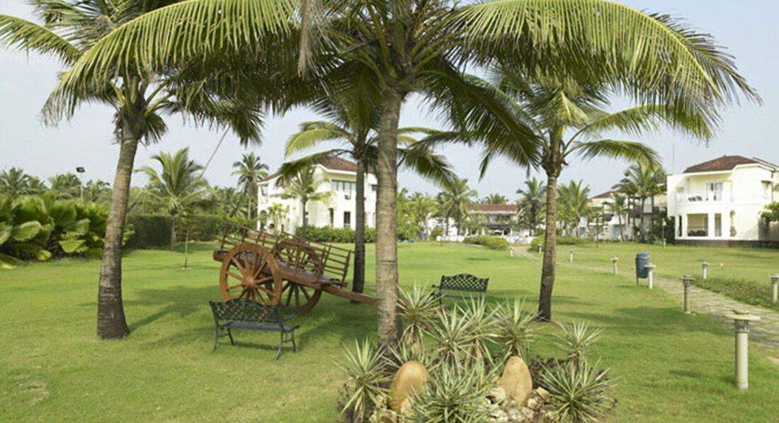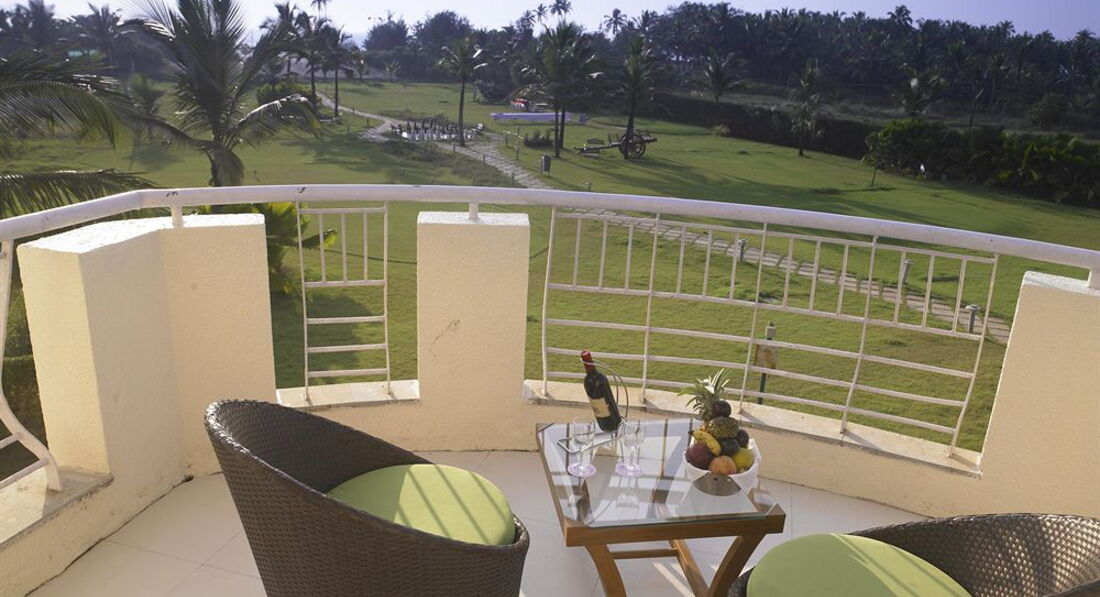 Территория отеля красивая, ухоженная, на этом все плюсы заканчиваются. До пляжа метров 500, а не 200, как заявлено в описании отеля. Пляж шикарный, белый чистый песочек, но это не заслуга отеля, на Южном Гоа все пляжи хорошие. Деньги можно поменять в любом шейке (кафе) на пляже по более выгодному курсу, чем в отеле. Шейк, ближайший к отелю, не понравился. Ходили по пляжу к отелю "Маджорда" в шейк "Миш- Мар", там очень вкусно готовят, есть меню на русском языке и русскоговорящие официанты. Обратно вечером отвозят на джипе к отелю бесплатно. Там же можно заказать русскоговорящего таксиста и ездить с ним по магазинам в ближайший поселок или в город и экскурсии гораздо дешевле, чем у туроператоров. Ездили с Виктором (Виджу), он бывает вечерами в шейке или его можно найти через официанта Винни. Мы за 300 рупий ездили в г. Маргао - туда и обратно + нам всё переводил, торговался и сумки за нами носил, а таксисты у отеля просят 700 рупий в одну сторону.