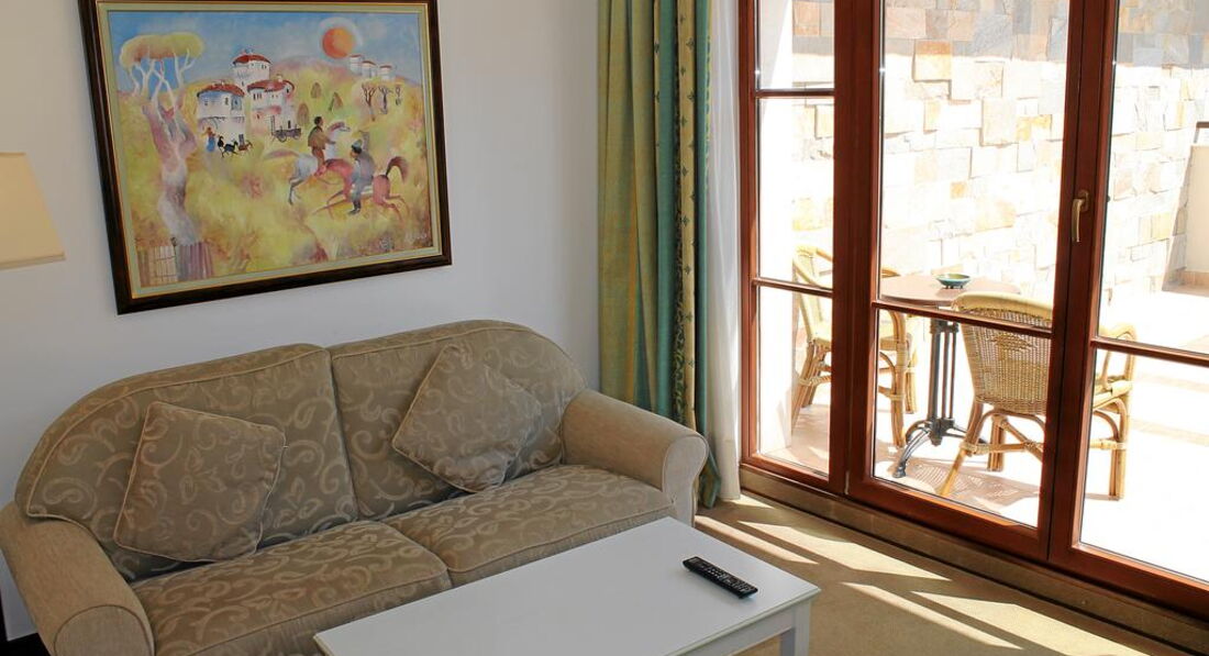 Junior Suite – одне приміщення з напівстіною, зона спальні з телевізором та двома односпальними ліжками або одним двоспальним ліжком та зона вітальні з м'якими меблями та телевізором, макс. 2 дор. + 2 дит. або 3 дор., 55 м2,