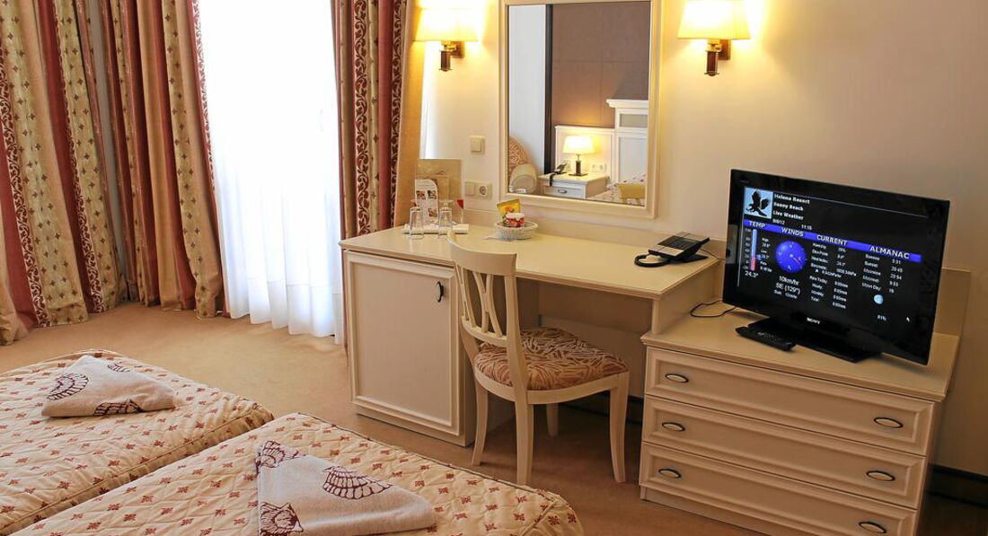 Затишний готель на березі моря. Гарне харчування, доброзичливий персонал та відмінний SPA-центр з великим вибором процедур. Один із небагатьох готелів на курорті Сонячний Берег, у якого безкоштовні парасольки та шезлонги на пляжі. Високий рівень сервісу, за що готель кілька разів отримував найпрестижніші міжнародні нагороди Golden Medal by Thomson Holidays та TUI Holly.