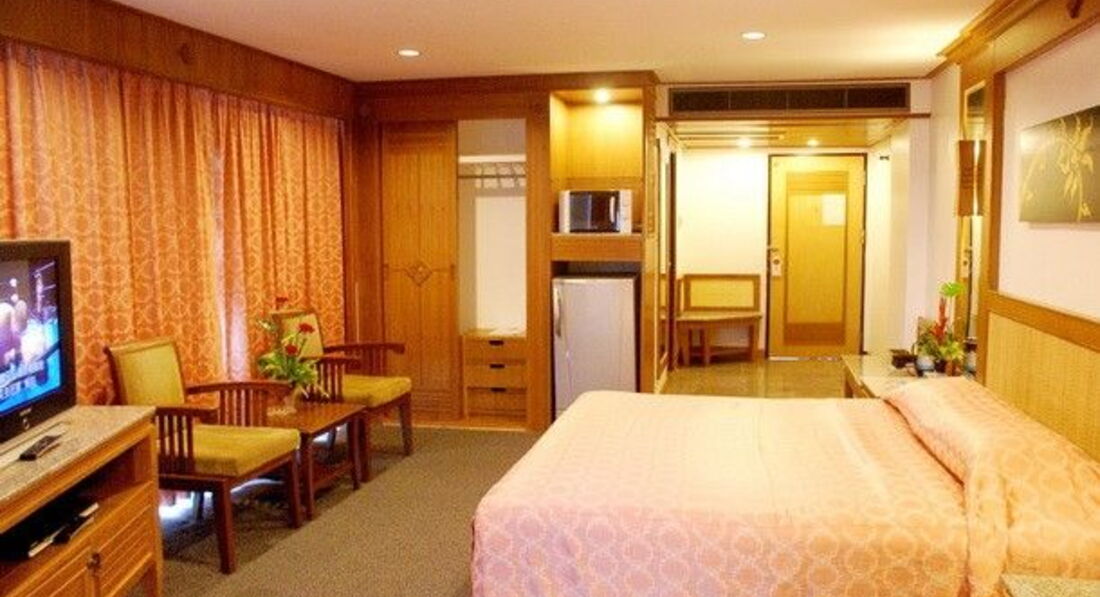 Отдыхали с женой, и моим другом в июне месяце...отель заслуживает четверку... НО)))) и этих но было не мало....разместили в принципе сразу как приехали...проводили в номер, номер большой с хорошим балконом,но запах старого отеля дал о себе знать моментально)))через 10 минут после включения кондиционера он стал течь,вызвали инженера,минут 30 возился но сделал.байки по поводу русско язычного персонала развеялись в первый же день))хорошо что англ чуть чуть понимали...следующим "но" было наличие в отеле только платного wi fi...сто рублей сутки..первые дня три оставляли в номерах чаевые,но эффекта от них не увидели,разве что загнутый край одеяла с одной стороны)))))сейфов в номерах нет поэтому пришлось деньги и документы прятать в чемодане под замком....у друга на 3 день прибытия в отеле,пропали 500 батт.сначала мы с женой подумали что это результат пьянки на волкин стрит,но наши сомнения развеялись после того как в последние дни отпуска у него пропало еще 1000 батт!!!крадут не всю сумму а частично)думают мол русский напился да и забудет про деньги...со временем у друга в номере появились тараканы,на ресепшене сказали что номер менять не будут т.к. уборщи цы их не видели))))единственный плюс по моему мнению это месторасположение отеля.он не далеко от волкин стрит(примерно 10 мин хотьбы) и недалеко от рынков(15 мин)...хотелось бы отдельно высказаться по поводу отельного гида альбина(Пегас туристик) ...гид НИКАКОЙ !!!!сложилось такое ощущение что его суть как гида заключается только в том чтобы продать экскурсии и все(((из всего что мы купили понравилась только экскурсия "Квай"...все остальное ниочем(((за день перед вылетом мы сами в интернете узнали во сколько у нас вылет....от нее ни звонка ни смс ни листа выезда на ресепшене мы не увидели!!!!гиду можно поставить твердую двойку!!!!не знаю почему Пегас туристик держит у себя таких безответственных работников