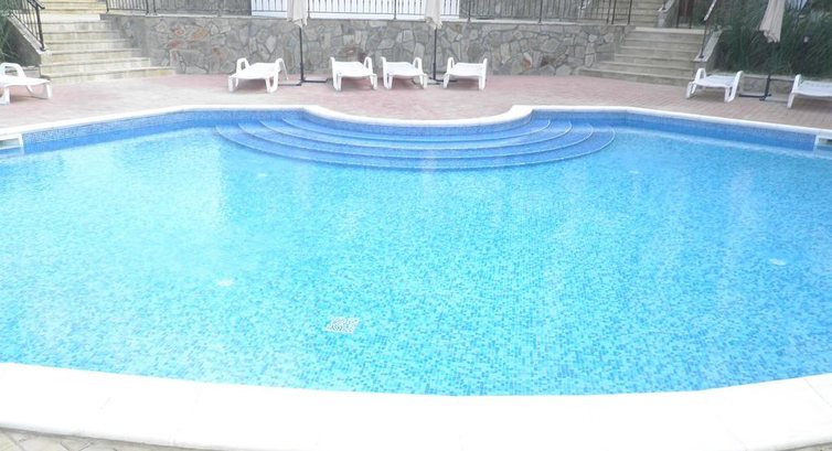 Перед поездкой с малышами на море в Болгарию о данном комплексе ничего не читала заранее. Меня устроила стоимость (за двухкомнатный апартамент) что-то в районе 40-45 евро в июле, очень-очень дешево. Наличие детской площадки, тихое спокойное место и не частный сектор. Отдыхала месяц с грудничком и четырехлетним. Ранее я уже бывала в Святом Власе в "Райском Саду", для этого отдыха было дороговато. Прилетели-приехали, заселили сразу на несколько часов раньше, чем по правилам заселения в отель (в 14-00). Арендовали только апартамент без питания. Все прилично, скромно, в нашем апартаменте и все относительно новое. Читаю в отзывах, что не убирали и белье не меняли. Не правда. Убирают и белье нормальное чистое. Вы бы видели как на ресепшн наши русские и "ихние" украинцы себя ведут - кошмар. Орут, кричат, ругаются на бедных ресепшионистов. Даже по русски в отеле не хочется разговаривать, так стыдно за таких отдыхающих собратьев. Причина скандалов на ресепшн - плохо убрали апартамент, или сегодня не убрали и т.п. Но позвольте, когда Вы снимаете где-то квартиру (в Испании, например) , Вы ее и убираете. А жаловаться, что в ванной прилипает к ногам песочек из-за плохой уборки. В общем, меня устраивала уборка (я сама убиралась тщятельно, поскольку с двумя малышами). В ванной комнате (как в финских коттеджах) душ - лейка, без кабинки и сток (швабрачка была, чтобы подтереть разлитости). Из нюансов, в апартаментах нет стиральной машины (стирала в раковинке и сдавала в прачечную, кажется 4 евро за 4 кг постиранного белья. Порошок давала свой, детский гипоаллергенный (постиранные вещи пахли им). Также в кухонном боксе нет микроволновки, и посуды по минимуму.