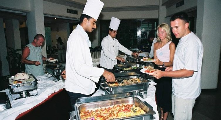 Я в этом отеле отдыхала в 2005 г и уже знала, куда еду. Путевку брали горящую и особых притязаний у нас не было. Отель продавался, туристов было очень мало. Кормили сносно и при этом моя мама умудрялась объедаться. Вечерами на улице жарили гриль. Соками из пачек не поили, а спиртное мы не пили. В магазине докупали йогурт, соки и фрукты.