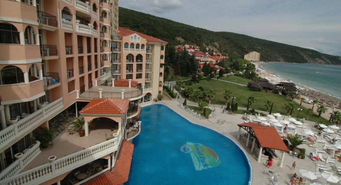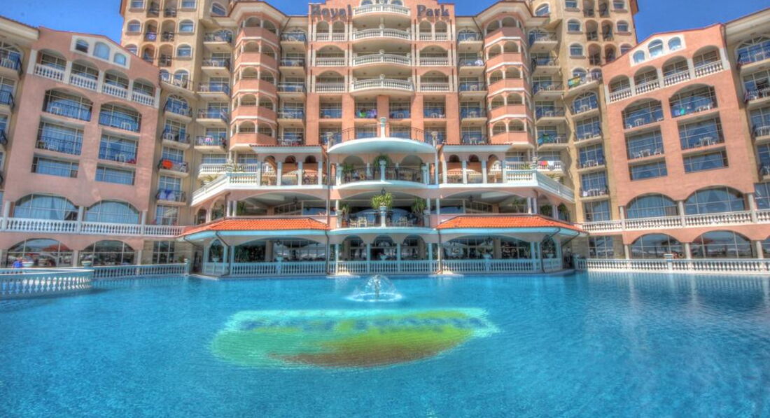 Раньше отдыхали в Болгарии на Солнечном Берегу, а в этом году знакомые посоветовали для отдыха Елените. Отель выбирали из соотношения цена-качество по отзывам и рекомендации менеджера т-о ТПГ, где мы покупали путёвку. Поездка организована очень хорошо. Проблем с перелётом, трансфером, сопровождением не было. В отеле нас хорошо встретили, быстро заселили в номер. Номер в целом неплохой,хотя видно, что мебель и техника там совершенно не новые. Кровати удобные, места для хранения вещей достаточно. Кондиционер, фен, тв, мини-холодильник, сейф. В ванной нормальная сантехника, при заселении были гель, шампунь, мыло. Полотенца меняли регулярно. Балкон с сушилкой для одежды и пластиковой мебелью. Уборка неплохая. С питанием в отеле тоже все было нормально. Завтраки стандартные, не менялись - чай-кофе, выпечка, нарезка, фрукты, овощи, гарниры, хлопья. На обед и ужин пара видов супа, рис, макароны, мясные блюда, салаты, овощи, фрукты, сладости. Мороженное в неограниченном количестве. В ресторане чисто, столы убирают быстро. Официанты приятные, улыбнутся, подскажут. Территория огромная, красивая, много уютных лавочек, растительность, бассейны, аква парк и прочее. Очень интересная и занимательная детская анимация. В целом, для семейного отдыха отель очень подходит и за свои деньги это вполне оптимальный вариант. Я бы рекомендовала всем Royal Park, 4* для отдыха в Болгарии.