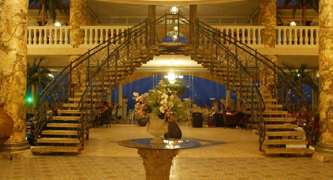 Начну по-порядку. Размещение в отеле в 14.30, на ресепшене принципиально денег не берут, что похвально, заселили в нормальный номер на 3 этаже, правда не с видом на море,но номер был хороший, чистенький. Прилетели в 6 утра, завтраком не накормили, браслеты надели в 10, обед был. За семь дней уборку производили 2 раза, если, конечно, это можно было назвать уборкой, полотенца не меняли, пока сами на пол не бросили (кстати их было не в достаточном количестве, для лица было всего одно, для ног - вообще не было), мусор не выкидывали вообще, там люди ходили - ругались, мы лишний раз не портили себе настроение, зато ничего не украли (как писали в предыдущих отзывах). Территория очень красивая, ухоженная, много фотографировались. Много бассейнов (только вода в них ледяная), свой аквапарк с классными горками. Питание очень хорошее, все неострое, вкусное, разнообразное. Но для нас было возмутительно, что в обед и ужин нет чая, как можно жирную пищу запивать водой или вином? Но выход мы нашли. Для любителей чая, его можно брать в баре на втором этаже (где решепшен), правда в пластиковых стаканах. Прежде чем идти в ресторан, предварительно брали чай и с ним шли на обед и ужин, очень неудобно.