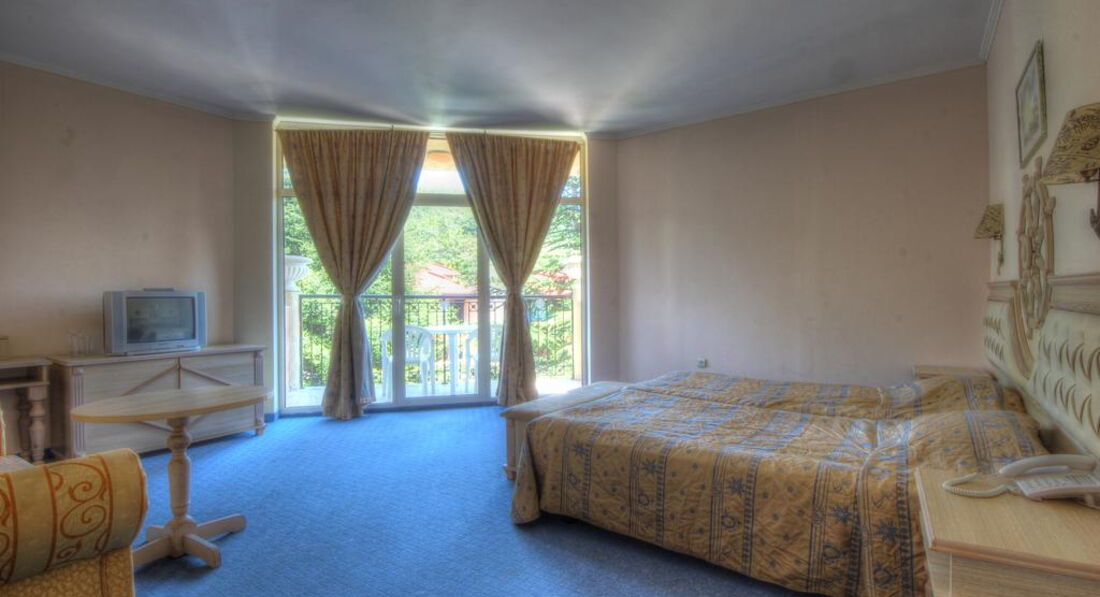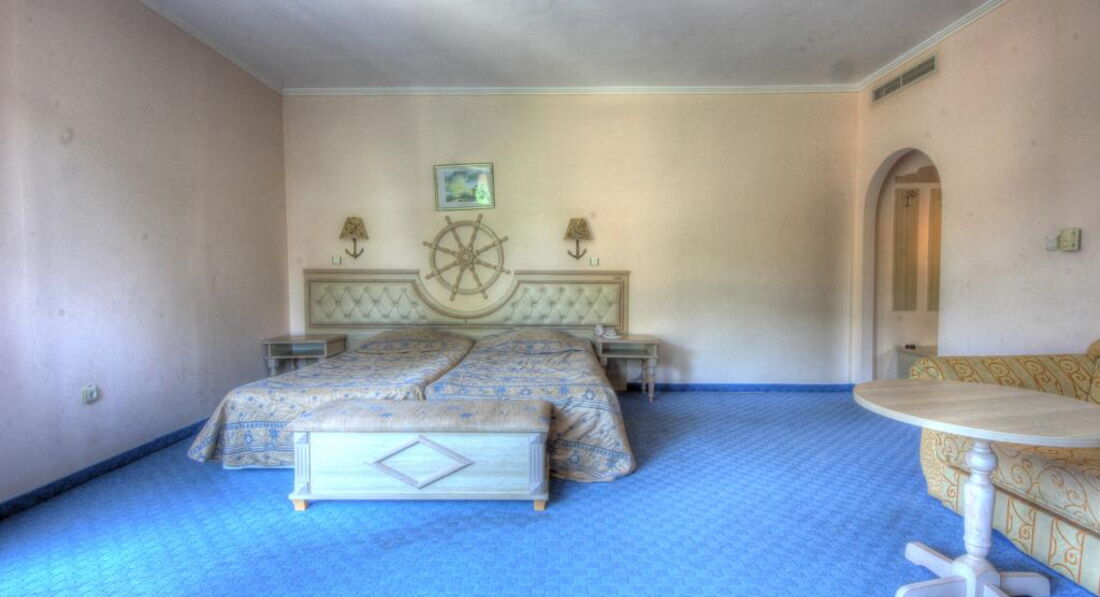 Нам достался номер на 3 этаже-номер большой, мебель нормальная, балкон. Полное отсутсвие сервиса-за 3 недели убрались только один раз, после того как наш туроператор оправил официальную жалобу, до этого пытались решить данный вопрос самостоятельно с сотрудниками отеля и с горничными отеля. Но видно для них выброс мусора и рулон свежей бумаги-это и есть уборка. Полотенца и постели не меняются ( пока не бросишь на пол у входной двери), не пылесосят, не моют полы и сантехнику-все в песке. Пляж-это ещё одна больная тема. Лежаков свободных не найти, все они заняты с 6 утра ( хотя везде весят объявления не занимать лежаки) , но никто за этим не следит-отдав 240 тыс за путёвки мы все дни отпуска искали место где лечь на песке или траве с полотенцами, так как здесь тоже, кто первый успел, того и тапки. Да и берегите свои депозитные полотенца, они странным образом пропадают. Аквапарк- нет неодного спасателя на больших горках, наверху, старшие дети толкают с горок детей по-младше, никто за этим тоже не следит. Кого-то вырвало в большом Бассейне и все это гастрономическое пятно так и плавало до вечера в воде.Кстати надо отдать должное, что не всех отдыхающих это смущало, многие продолжали плавать, не обращая на это внимание. Ресторан- претензий к еде, лично к меня нет. Все свежее , вкусное, выбор не большой ,но голодным не уйдёшь. Два вида первого на кубиках, 2-3 вида тешенного мяса и птицы, 1 вид выд рыбы и мясо на гриле, . На гарниры-рис, фри, макароны, иногда картошка. Много овощей, фрукты. Удивило, что на завтрак нет каш и творожных продуктов. А только яйца, блины и выпечка. К концу первой недели все уже приелось и ужинали в ресторанах. Больше даже писать не хочется. Не рекомендую данный отель. Если позволяет финансовая возможность, все местные хвалят 2 отеля в Солнечном береге-Helena и глукойловский отель. Рекомендую рестораны Несебра-очень вкусно везде, в любом заведении, большие порции, свежие рыба и морепродукты.