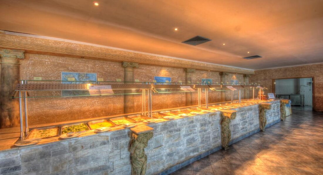 Питание. Понравилось. Все вкусное, в меру соленое, приготовлено по-домашнему. Меню достаточно разнообразное. Завтрак стандартный. Каша одного вида/были - гречневая, манная, овсяная/. Каждый обед и ужин всегда было три-четыре вида мяса тушеного/говядина, свинина, курица, несколько раз добавлялись индейка и кролик/, все мягкое, сочное, очень вкусное, всегда что-то еще мясное было обязательно вроде котлеток, стейков, голубцов и т.д. Плюс отдельно на гриле парень прямо в зале делал разные колбаски, шашлыки. Также на обеде и ужине всегда был один вид рыбы. Овощная нарезка: помидоры, огурцы, лук, - были всегда в достаточном количестве; капуста, капуста цветная, морковь и др. чередовались, и плюс были салаты несколько видов/не пробовали/, маслины, фасоль и др. Овощей отварных тоже было достаточно/морковь, различная капуста, кукуруза, горошек/. Гарниры макароны, спагетти, рис и картофель фри были всегда. Отварной картофель был редко. Также на обед и ужин было по два вида супа: мясной и овощной. Супы, которые я попробовала, вкусные. Очень понравились овощные супы-пюре. Постоянно разные/грибной, овощной, из кабачков, из моркови, томатный, овощной борщ, еще какой-то зеленый как наш щавелевый/. Подробно все перечислять не буду, но накормить можно всех: и детей, и мужей.