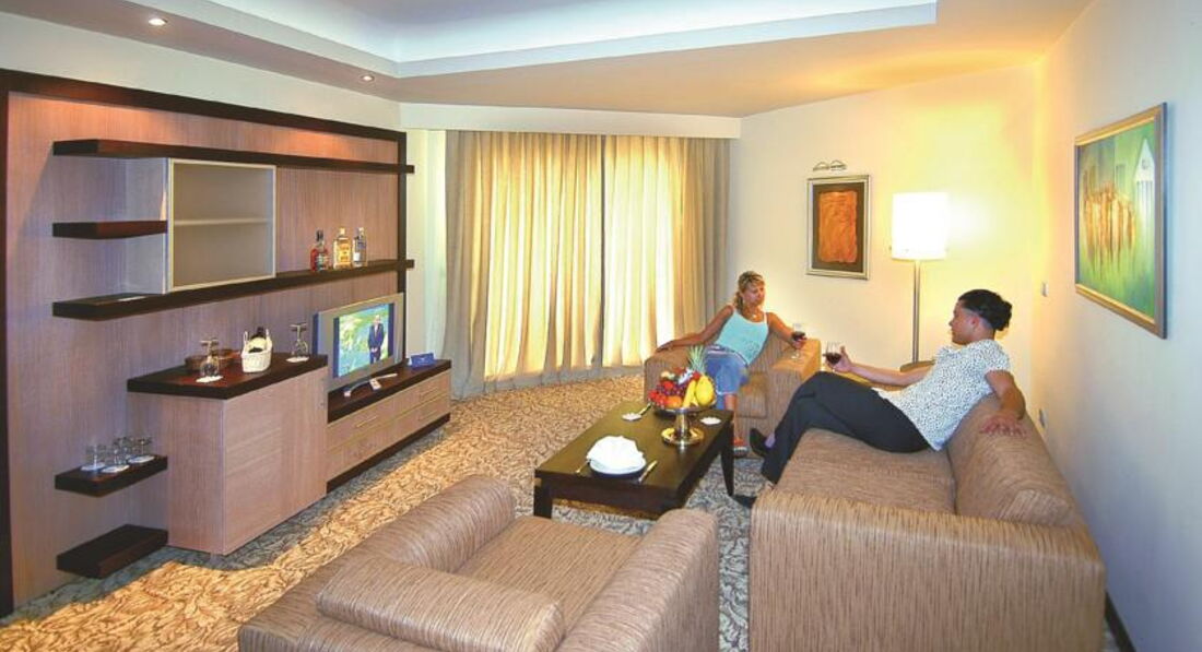 Включає: сніданок, обід, вечеря - шведський стіл; закуски протягом дня у барах готелю, алкогольні та безалкогольні напої місцевого виробництва, певний вибір імпортних алкогольних напоїв. Свіжі соки - платно, морозиво (у певний час) - безкоштовно. Молодятам - кошик з фруктами, шампанське; іменинникам – кошик із фруктами.