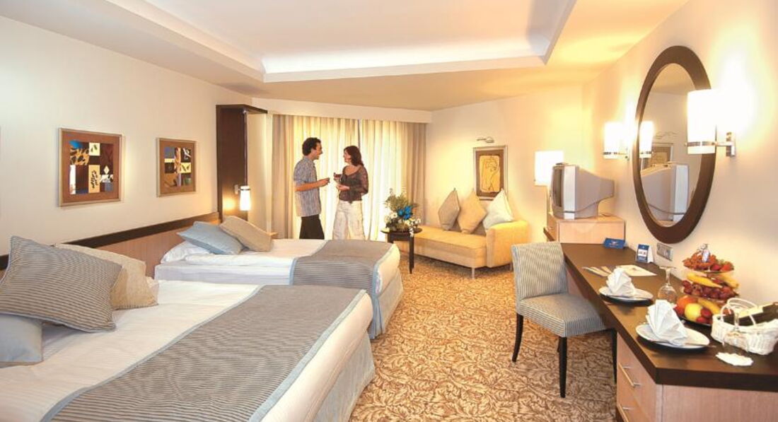 Сімейний готель із гарною територією. Просторі номери, великий вибір розваг для дітей – аквапарк та луна-парк. Активна анімація та спортивні заходи. Рекомендуємо для сімейного відпочинку.
