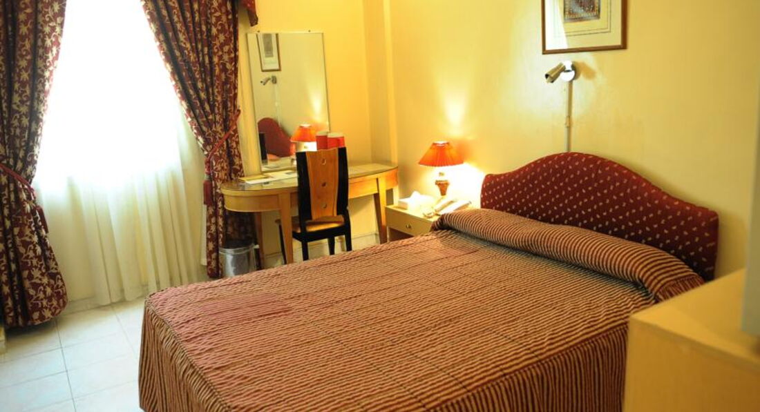 Отель унылый, грязный. Комната настолько маленькая, что человек едва может поместиться между кроватью и шкафом. Телевизор висит на боковой стене, смотреть его с кровати практически невозможно. Когда мы заехали был очень грязный душ - чужие волосы в сливе. Единственный плюс - месторасположение.