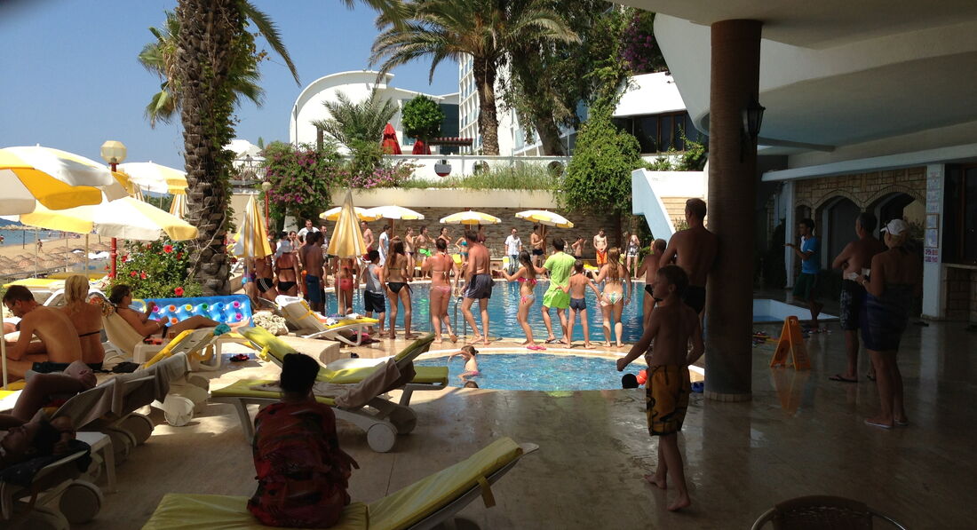 Анимация – слабая для местных на турецком. Аниматор – один турок. Есть волейбол и дартс. Вечерние шоу на турецком с пошлым юмором, мы на них были пару раз, больше не ходили. Музыка почти весь отдых была чисто турецкая (все равно что в отеле для русских с утра до вечера калинку малинку и очи черные крутить), только за день до отъезда включили интернациональную попсу (это в день открытия чартеров).