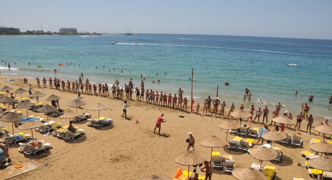 Пляжу отдельная пятерка – песочек желтый и постоянно волны. Шезлонги на пляже рано не занимали, приходили около 9 всегда были места в первом ряду. Мы загорали слева от лестницы рядом с турками и по соседству с городским пляжем. С права от лестницы загорали граждане Евросоюза и {удалено модератором}украинцы (рядом с будкой с матрасами), немецкие турки и немецкие русские (эти в первом ряду от моря).