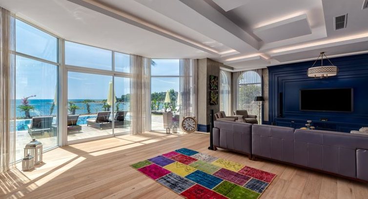 1 presidential villa (538 м2, 5 спалень, вітальня, 5 ванних кімнат, 3 санвузли, міжкімнатні двері, особистий басейн, джакузі у ванній та терасі, послуги офіціанта, набір для приготування чаю та кави, макс. 10 чол.)
