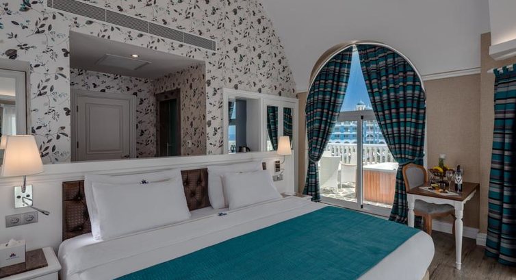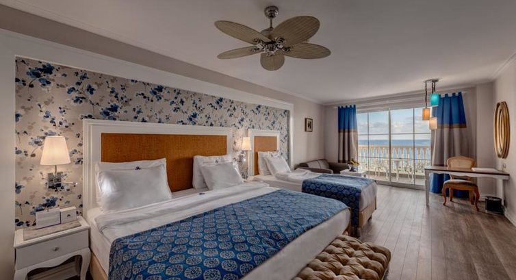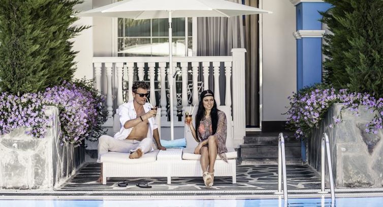 Готель Rubi Platinum Spa Resort and Suites розташований на березі моря. До послуг гостей курортний готель власний пляж у приватній бухті, а також відкритий та критий басейни, тенісні корти та спа-центр.