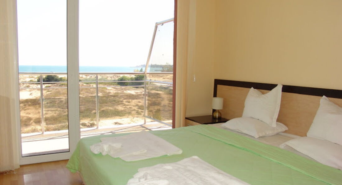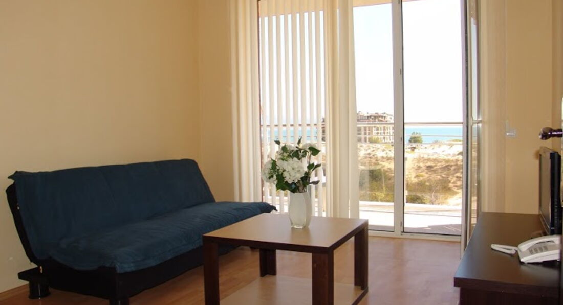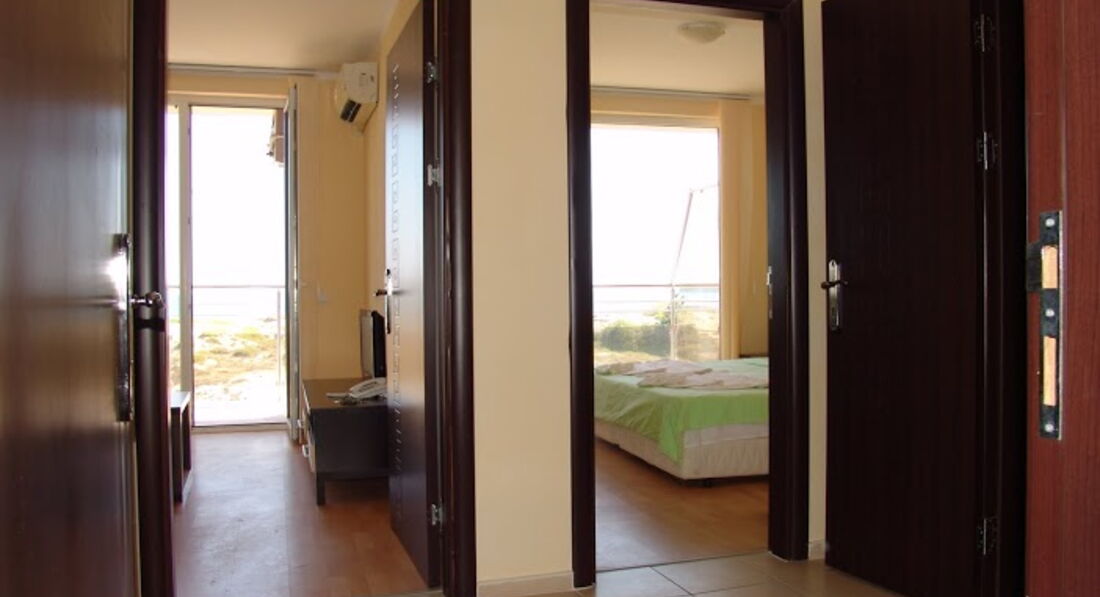 В Болгарии впервые. Страна просто покорила. Отдыхали 14 дней с 10 июня 2015 2 взр+2 детей (2 и 5 лет). С погодой не повезло, но ведь это никак не относится к отелю. Отель потрясающий. минусы его в конце моего отзыва. Все соответствует описанию и все фотографии реальные и действительные. Поселили мгновенно. Подошли к рецепции ,а нам уже ключи и пульты от ТВ и кондиционера выдают. Жили на 3 этаже в номере 309. с балкона вид на море. Огромные просторные номера, с новым ремонтом. Огроменный шкаф купе в спальне, большущая кровать, вторая комната тоже порадовала. Кухня новая, даже стиральная машинка есть. Кондиционер есть. Сейфа нет, но и необходимости большой в нем не видела. Убирают каждый день. Девочки-уборщицы из родной Украины просто золушки, умнички все. Полотенец выдавала по 5 штук на человека, мыло, шампунь без проблем. Только НЕТ ФЕНА, берите с собой. Утюг брали на рецепции бесплатно, если нужно было. ВАЙ ФАЙ ЕСТЬ, хотя раньше не было, он бесплатно есть он только на рецепшене. Любая поломка устранялась молниеносно. У нас сломался смыв в туалете. Уведомили рецепцию об этом и через час, когда пришли, все было отремонтировано. В 3-х минутах ходьбы есть супермаркет PENNY-очень порадовал ценами и выбором. Многие продукты дешевле чем у нас в Харькове, и там каждый 3 дня хорошие скидки на ряд товаров (выходите из отеля прямо, потом налево до первого перекрестка, направо выйдите к автомобильной дороге, налево и 100 м пройдете и супермаркет перед вами). На рецепшене работают отличные сотрудники, особая благодарность САШЕ (вещи бежал первым помогать нести, дверь открывал , на все вопросы отвечал и все подсказывал). Лишь 1 парень там не знает русского языка, а так все русскоговорящие. Бассейн есть и взрослый и детский, лежаки и шезлонги бесплатно, но их очень мало. Рядом отель Континенталь, там каждый вечер была минидиско с 20.00, куда мы с детьми и ходили и там же отличная детская площадка. Жаль, что в нашем отеле ее нет. Все номер ас видом на море, но через дюны вы не пойдете на пляж,нужно обходить по асфальту и потом таким деревянным дорожкам через дюны. Получается метров 500 наверное в обход. Из отеля вышли направо и направо. Советую взять бельевую веревку и прищепки, нам очень пригодились. К нам несколько раз приходили соседи сверху забирать вещи, которые улетели у них ночью к нам с балкона на балкон. В отеле в холле есть небольшой бар, где можно заказать коффе, каппучино, коктейли. Недалеко от отеля конечная остановка паровозика, который везет в старый Несебр. Рекомендую! Это супер кукольный старинный город. А в новый Несебр ходили пешком минут 10. Там, кстати, есть шикарная сеть супермаркетов, тоже с хорошим выбором и низкими ценами-Janet. К центру солнечного берега, к шумной набережной с сувенирными лавками и дискотеками идти долго, наверное около часа. можно проехать тоже или на автобусе, или на паровозиках. Кстати, мы попросили нам сковородку и электрочайник в номер, так как этого не было, нам дали на след. день. Сказали,что в наличии свободные были. Если бы не было, то отказали. Чайников в номерах нет, мы просили и говорили ,что без него помрем. Пляж чистейший, убирают каждое утро машинки такие, мусор собирают. Пляжная полоса широкая. Море чистенькое, крабики и рачки ползают по дну. Спасатели на спасательных вышках сидят через каждый 100 метром. В общем, РЕКОМЕНДУЮ этот отель для семей