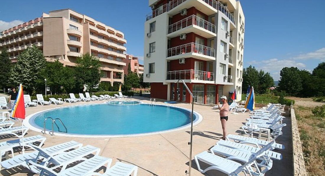 Отдыхала в июле 2015 года с группой. Первоначально нас должны были заселить в другой отель, но из-за отсутствия мест разместили в этом отеле. Итак, что я могу сказать отель хоть и многоэтажный, но кажется очень компактный из-за маленького холла. Так как отдыхала с группой то была не только в своём номере. Нас заселили в номер с подругой на втором этаже. В номере есть прихожая в нем стоит зеркало туалет с ванной общие потом идут две комнаты. В одной соединённые две кровати в одну большую, огромный шкаф встроенный, зеркало со столиком, выход на балкон, тумбочки. Все новое и красивое. Вторая комната -это кухня. На кухне стиральная машина даже есть плита, холодильник . шкафчики, большой диван который раскладывается , столик и телевизор с тумбой и тоже выход на балкон. В ванной : душивая кабина и туалет тоже все новое и красивое. У нас сложилось впечатление что мы сняли квартиру просто, а не заехали в отель. Получилось что моя подруга жила в одной комнате а я в другой потому что для этого были полностью все удобства. Холл у них хоть и маленький, но красиво обставлен, есть бар, но мы его услугами не пользовались. Вай фай периодически проподал, но сигнал был хороший ( в нашем номере так вообще он ловил, так как номер был прямо над холлом). Персонал дружелюбный, но первую половину отдыха, как не странно на рецепшене русскоговорящих не сильно понимали, хотя болгары как мы поняли в основном говорят хорошо на русском. Море было теплое , но пару дней вешали флаг красный и не пускали далеко, хотя вроде был сезон. Хоть и считается что этот отель находится на 2-ой береговой линии, до моря было идти достаточно недалеко .Лежаки платные , есть бесплатная зона , но лучше приходить рано так как очень много людей и лежишь друг на друге. Цены выше чем у нас на заметном уровне. Ездили в центр солнечного берега. Там на каждом шагу клубы везде приглашают и в осноном для девушек бесплатное некоторое спиртное. Если любите ночную жизнь то там стоит побывать. Спиртное там дешевле чем у нас но лучше пройтись не по магазинам возле набережной а пойти там где ходят автобусы через перекрёсток там есть обычный супермаркет и там намного дешевле и на акциях. И обязательно стоит посетить Несебер, он даже пешком в минутах 20 находится и там очень красиво. Из минусов в отеле был не чищеный кондиценер и плохая уборка ( убирались каждый день но такое ощущение что просто сверху тряпкой проводили)