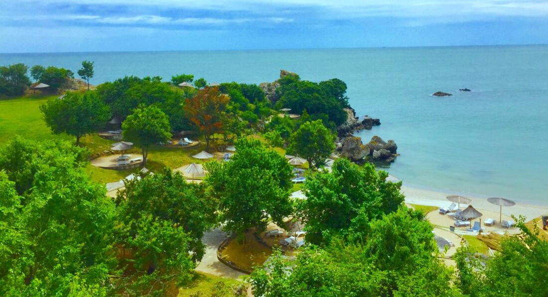 Комплекс збудований у 1968 році, повністю реконструйований у 2002 р. Розташований у старому дубовому гаю на березі моря. Належить туристичному холдингу Russalka Holidays. Готель підійде для сімейного пляжного відпочинку.