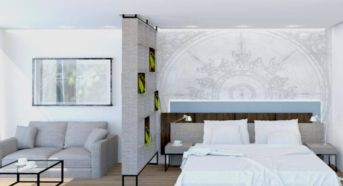 DBL/TWIN: 27м2, тераса, Junior Suite: 4 двокімнатні номери (близько 25 м2) з видом на парк, оформлені в синьо-блакитних тонах. Максимально допустиме розміщення – 2+1 людина.