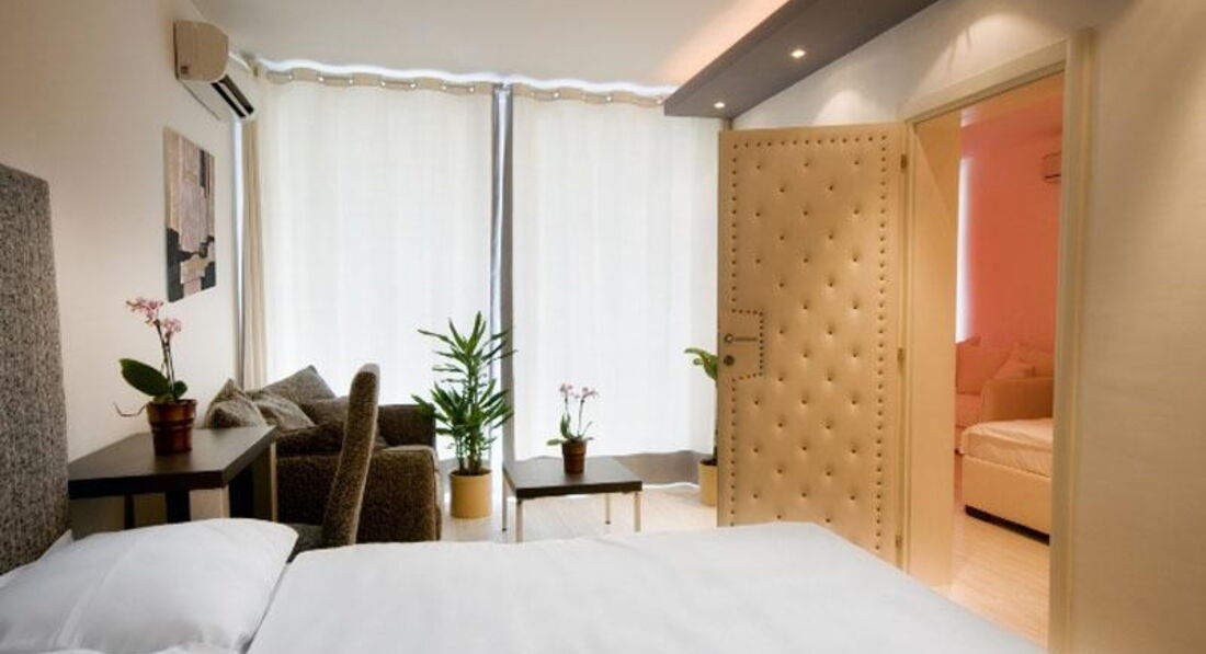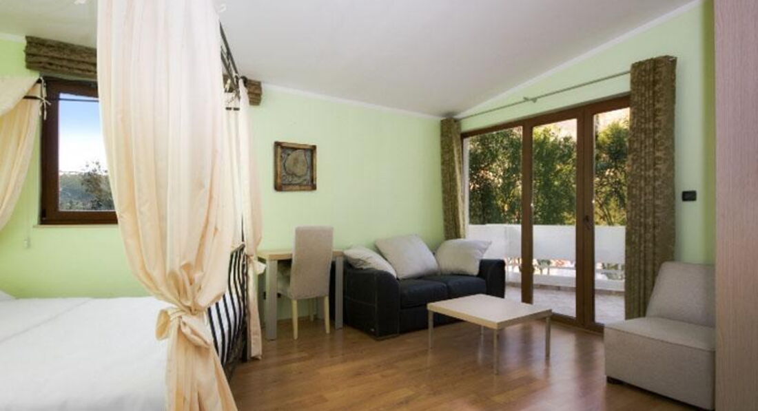 Superior Junior Suite: 4 просторі номери (близько 30 м2) з видом на парк або частковим видом на море оформлені в пастельно-зелених тонах та обладнаних двоспальним ліжком. Максимально допустиме розміщення – 2+1 людина.