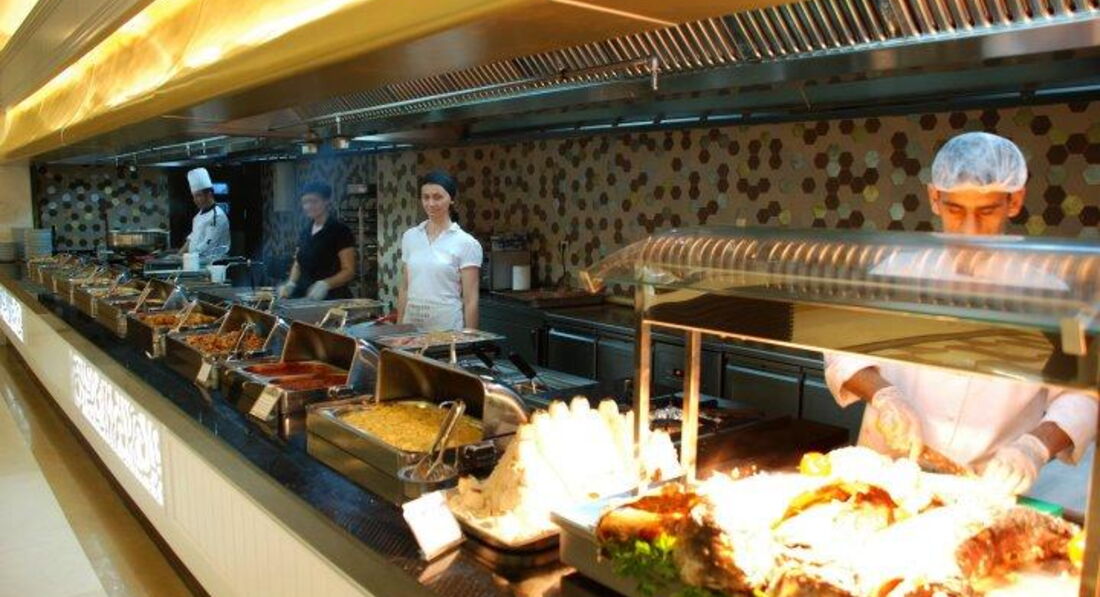 нам всего хватало. Очень много морепродуктов - креветки, 3-4 вида рыбы, включая лосось, иногда раки, осьминоги, кальмары. Авокадо, сыры (пармезан, моцарелла, дор блю, турецкие), каперсы, анчоусы, язык, печень, копченая рыба, паштеты, муссы, итальянская кухня, китайская, местная. Всякие лазаньи, пироги печеная картошка, грили... Фаукты - 2-3 вида слив, нектарины, абрикосы, персики, виноград 2-3 видов, дыня, арбуз, яблоки, черешня, малина, инжир, сухофрукты, груши, апельсины, грейпфруты... Десерты выше всяких похвал - панна котта, чизкейки, паи и пироги, запеканки, эклеры, профитроли, торты, пирожные, таратлетки, желе, заварной врем, пудинги, местные сладости, взбитые сливки, тирамису. Кофе заварного или турецкого нет, только местная бурда. На завтрак за 1.5 евро фреши, из еды векусные блины. В целом, ОЧЕНЬ даже.