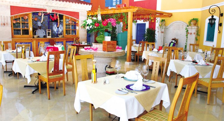головний ресторан розрахований на 280 осіб (критий, з кондиціонером, літня тераса, дитяче меню, дієтичне меню, дитячі стільці); лобі-бар (10:00-00:00), бар біля басейну (10:00-18:00), бар на пляжі (10:00-18:00), диско-бар (22:00-00:00) ), шиша-бар (16:00-22:00), та ін. 2 ресторани A la Carte: італійський, індійський - відвідування кожного з ресторанів платне 1 раз на тиждень, за попередньою резервацією (18:30-00:00) .