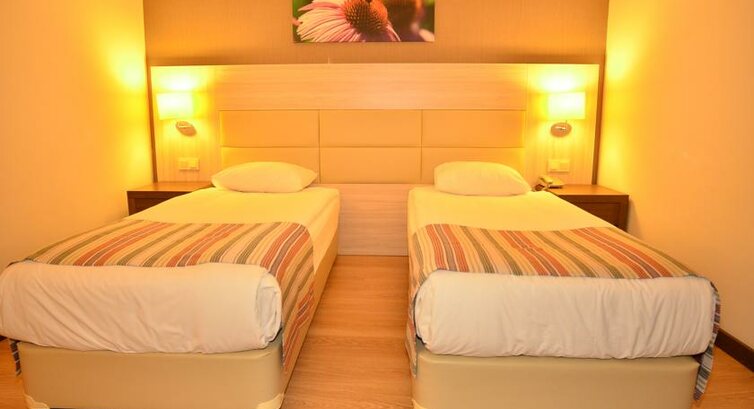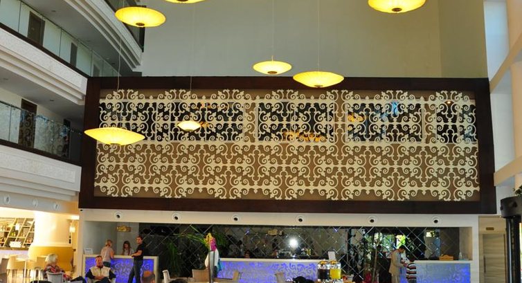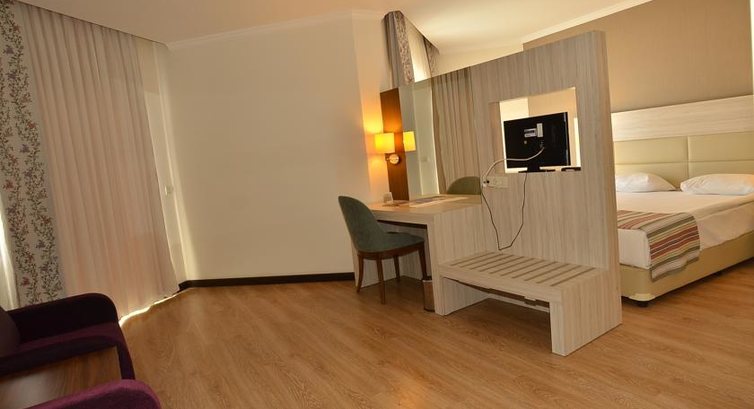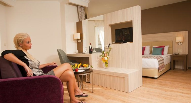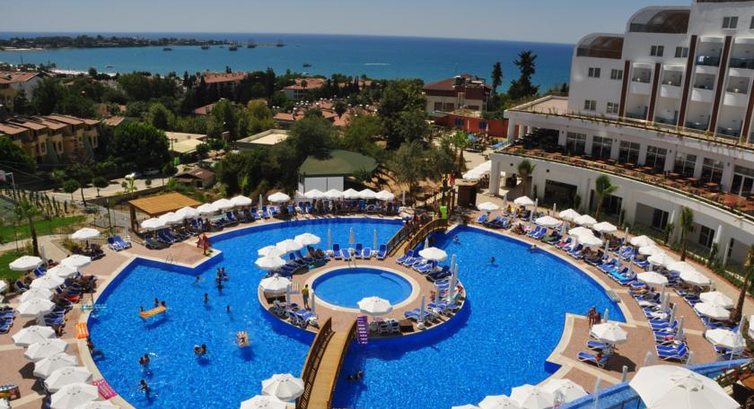 Отдыхали в отеле с 22 июня по 2 июля 2016 года.Отель выбрали сами,без рекомендаций.Но ни разу за весь отдых не пожалели о своем выборе.Отель красивый, чистая и ухоженная территория.В номерах аккуратная,новая мебель.Телевизор,кондиционер,хододильник-все есть.Обслуживающий персонал(от ресепшина и до уборки номеров) вежливый,отзывчивый.Питание разнообразное и очень много,можно перекусить в разных уголках отеля.Отель находится на второй линии от моря,но неудобств это не доставляет.До пляжа 4-5 минут.Пляж собственный,чистый.Единственный минус в отеле,то что работники отеля практически не знают русский язык и у нас были некоторые сложности в общении(в отеле в основном отдыхают туристы из евросоюза).Но если вы хорошо владеете английским,то никаких проблем не будет.Хочу выразить благодарнось компании Anex Tour.И в частности поблагодарить отельному гиду Рафику Идриссову.Он большой профессионал,очень внимательный и вежливый человек.Много и интересно рассказывал о культуре Турции и учитывая все наши пожелания предложил очень интересные экскурсии.Благодаря ему мы посетили античный город Сиде,Помуккале и Каппадокию.Так как у нас проблемы и иностраными языками Рафик помогал нам в общении с персоналом отеля(был нашим переводчиком).Рафик-тебе большое спасибо.Отель однозначно рекомендуем.Отдых получился супер.Спасибо Турции,Спасибо Anex Tour.Спасибо Рафуку.Хочется еще вернутся к вам.