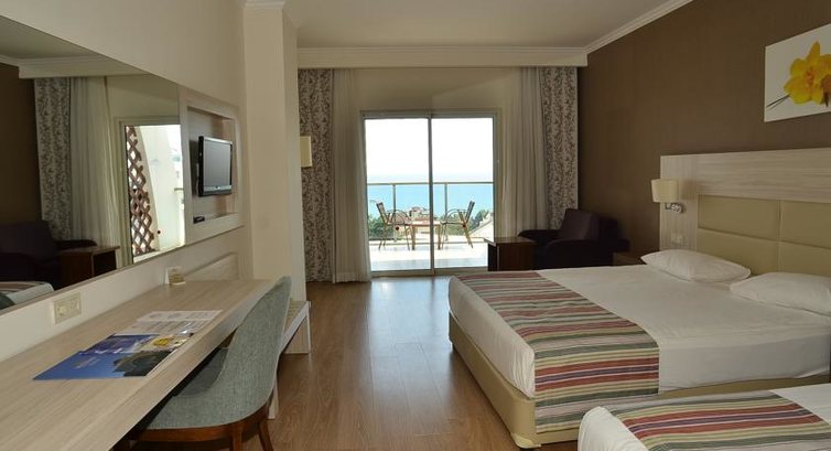 Отдыхали в отеле в октября 2016г. Отель большой, чистый, красивый. Номера современные, телевизор с 2-мя российскими каналами, в номере есть чайник, вода пополнялась ежедневно. Были приятно удивлены количеством, качеством и разнообразием еды. Каждый вечер был гриль (шашлык из свинины, курица на гриле, рыба на гриле, люлякебаб), утка, перепелки, стейки из говядины, и море, море сладостей и фруктов. Голодным точно никто не останется. На пляже, у бассейна работают бары, где можно перекусить пироженными и мороженным. Пляж - песчаный, до моря идти метров 100. Прекрасный отель для семейного отдыха.