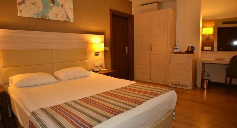 Искали бюджетный отель с диет.питанием, т.к. отдыхали с сыном - 2 года. Не прогадали отель понравился, всем довольны. Приехали в 9 утра, нам сообщили, что наш номер готов и предложили сходить покушать а потом заселяться, так мы и сделали. Сейф оплатили по 2 доллара в сутки (стоимость 3 доллара или 2 евро, сделали скидку без просьб.) К номеру претензий нет - мы платили за эконом рум, летели с анексом, из эконом был только вид, а так отличный номер, просторный, разделен перегородкой как бы на 2 половины, что нам, как людям с ребенком, было очень актуально. Сразу принесли детскую кроватку-манеж. Уборка отличная, каждый день моют все стекла даже на балконах, которых у нас было 2. Пополняют чай-кофе, воду, туалетные принадлежности исправно. Сын отказался плавать в море, видимо вода была прохладной для него, на свой страх и риск пустили в бассейн, очень боялась ротавируса, но, благо, зря. Всю аптечку нетронутой привезли домой, а она была на пол-чемодана - я мама-паникер. Каждый вечер из всех бассейнов отеля берут пробу воды, проверяют все ли ок. Каждый вечер чистят. вообще к чистоте в отеле претензий нет, и территория, и помещения, туалеты, все душевые, пляж - все убирают каждый день. Единственный минус это курящие всюду туристы))) ну и бычки бросают как попало, но это уже детали, персонал старается убирать, чистенько. Мы с ребенком, на экскурсии не ездили, так-то по этому поводу ничего не скажу.