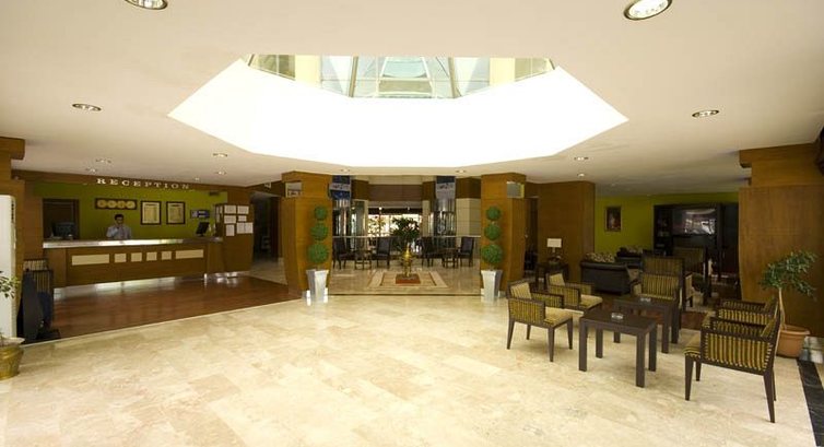 Перелет туда турецкой авиакомпанией, давали чай, кофе, бутерброд. Обратно Северный Ветер, предложили только воду без газа и все. Турецкий Боинг 777-200 нормальные кресла, наш С. В. переделанный кресла не откидываются, расстояние между ними очень маленькое, для миниатюрных людей. В отель приехали в 10.00 утра, одели браслеты и пошли завтракать, номер дали как и сказали ровно в 14.00, на 5 этаже (504), с видом на будущее (кладбище), прсили поменять, не в какую. В номере телевизор не работал (так и не сделали до отезда), унитаз не работал (сделали на второй день), кондиционер потёк (сделали в течении дня). Обращаться на рецепшен бесполезно, не реагируют ни на что, особенно там есть дама, она якобы старшая там (редкостная тварь), объясню почему: С нами в один день приехала девушка из Молдовы, ей дали номер на первом этаже с видом на бассейн, так вот у неё на четвёртый день из номера украли деньги, она пришла на рецепшен к этой даме, и та ей сказала что она сам виновата, что не купила у них сейф (он платный у них). И вот она сидит, плачет, не знает что ей делать, мы решили поддержать её, говорим вызывайте полицию, поесть резберутса, а она нам сами звоните и вызывайте, она может сама деньги спрятала, а на отель все сваливает, может у вас завтра деньги пропадут, а это ваш муж их стащит и прогулять. Представьте нашу реакцию на её слова. Но мы все равно на стояли, вызвали гида и полицию. (После этого, документы носили всегда с собой). Кончилась эта история тем, что приехал управляющий и чтобы замят все, как раз начался мосульманский праздник (Ураза Байрам), ей отдали все украденные деньги. Про обслуживание все написано верно, в барах на тебя смотрят презрительно - ненавидищем взглядом, особенно в столовке. На пляже грязь, лежаков не хватает, уборка происходила исключительно в обед в15. 00 когда ты в номере отдыхаешь. Вечерних прграм как таковых небывает, дневных все у бассейна собираются, ждут когда горку включат. Ещё одна неприятность, брали экскурсию в Помукале, от Пегаса, когда привезли нас обратно в отель, забыла в автобус пакет, с подарочными набора и полотенец и носовых платков, а также свою хорошую дорогую шляпу. Звонили гиду от Пегаса, старшему гиду, сказали что ничего не нашли, водитель пакет не видел, хотя после нас, остались несколько человек и один отель куда их должны были завезти. Отель, не рекомендую, поехали только потому что надо было срочно, отпуск подходил к концу.