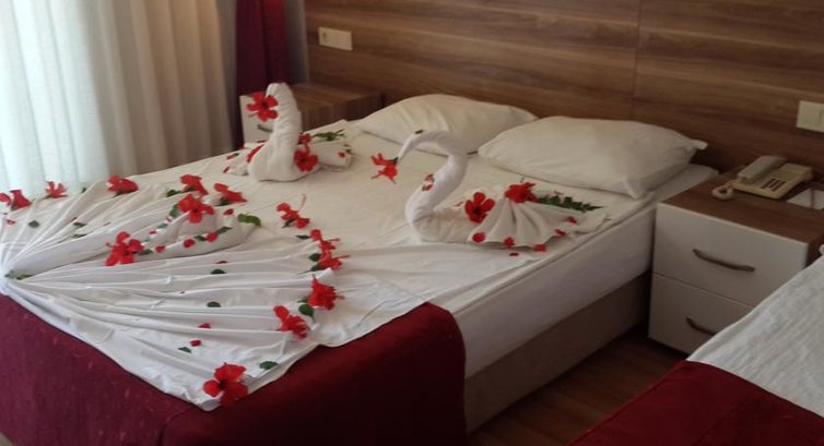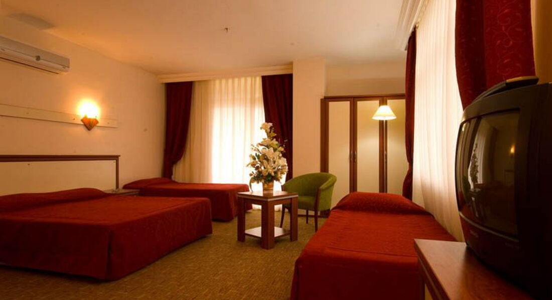 Такого ужаса я в жизни не видела! В Турции была много раз, отдыхала и 4* и в 5*. А этот отель даже на 3* не тянет. Хамство и грязь начинается прямо со входа в отель. Очень, очень и ооочень грубый персонал: хамят на каждом шагу. По приезду сразу позвали нас и наших знакомых (все мы, 6 человек, приехали с одного города ) в кабинет и сказали, что мест нет, или 3 семьи вместе заселяйтесь, или в другой отель заселим. Мы конечно отказались. По нашему лицу наверно было видно, что никаких денег они не получат. Походили мы, покушали и номер нашелся. Номер- это нечто!!!! Кроватей там нет, это два матраца, сложенные друг на друга на полу! Матрацы грязные, полотенца все в пятнах, старые, дырявые.. Душевая кабинка страшная, грязнющая!! босиком стоять невозможно, мылись в тапочках. Краны , раковина, унитаз- это просто кошмар!!!