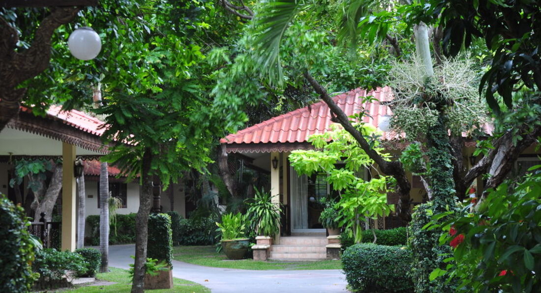 Отель оправдал все ожидания. Действительно, после шумных улиц Паттайи попадаешь в чудный мир тишины и спокойствия. Территория отеля достаточно большая и ухоженная. Очень хотелось взять виллу, но из соображения экономии взяли номер Superior. Нам достался номер над входом в отель. Номер без изысков, но все необходимое есть - большая кровать, шкаф, бесплатный сейф, холодильник с платными напитками, две бесплатные бутылочки с водой каждый день, телевизор с тремя русскими каналами, туалет и душ. Конечно, взыскательным туристам будет к чему придраться, в номере достаточно темно, есть только одно маленькое окошко под потолком. Но мы не страдали, так как в номере только спали. Да, телевизор старый, но вы будете его смотреть? Действительный минус - отсутствие фена. Но и эта проблема решается очень просто, фен можно взять на ресепшен. Кстати, мой муж не знает не только тайского, но и английского языка, зато его язык жестов прекрасно поняли и фен выдали на все время нашего пребывания. Персонал отеля очень доброжелателен, как и все тайцы с которыми мы сталкивались. Зато в номере было очень тихо, звуков с улицы совсем не слышно, с соседями тоже повезло, в основном это были русские семейные пары. Никакой живности в виде муравьев, тараканов и клопов не наблюдалось. Убирались и меняли полотенца каждый день. Оставленные чаевые в виде шоколадки на качество уборки не влияли, лебедей из полотенец на кровати нам не выкладывали. WiFi в отеле бесплатный, не знаю как в других зонах, но в нашем номере Интернет ловил без проблем. Логин и пароль выдают на ресепшен, переодически его меняют.