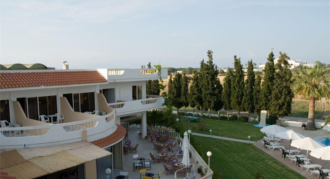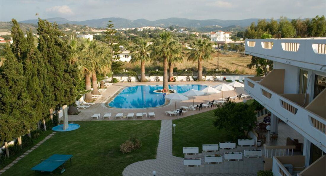 Територія та послуги: • основний ресторан (грецька та європейська кухня, «шведський стіл») • лобі-бар (10:00-02:00) • кав'ярня (10:00-02:00) • wi-fi на території • автопарковка • велопарковка • магазини • пральня • камера зберігання на ресепшн • оренда велосипедів • оренда автомобілів • шатл у центр міста Розваги та спорт: • відкритий басейн (200 м2) • настільний теніс • настільні ігри • ТВ-хол • більярд (2 євро/партія) • серфінг та кайтсерфінг • водний мотоцикл • інтернет кафе Для дітей: • відкритий басейн • ігровий майданчик • стільці в ресторані (за запитом) • ліжечко в номері (за запитом) Живлення: • BB – сніданок. • HB – сніданок та вечеря. Пляж: Громадський гальково-піщаний пляж за 100 м від готелю. Протяжність пляжу – 1 км. Шезлонги, матраци, парасольки – платно. Пляжні рушники не надаються. До оплати приймаються кредитні картки: Visa, MasterCard, AmEx.