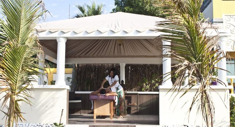 В подвале небольшой спа-центр: массаж (платно), тренажерный зал, хамам, сауна, душ,вода, чай, полотенца — все бесплатно. В женской половине спа есть бассейн. Другой бассейн на улице под крышей — очень удобно скоротать время в полуденную жару или по приезду, пока кожа не подвялилась :). У бассейна выдают полотенца для пляжа. За день можно несколько раз взять-сдать без ограничений и бесплатно.