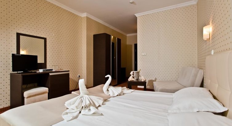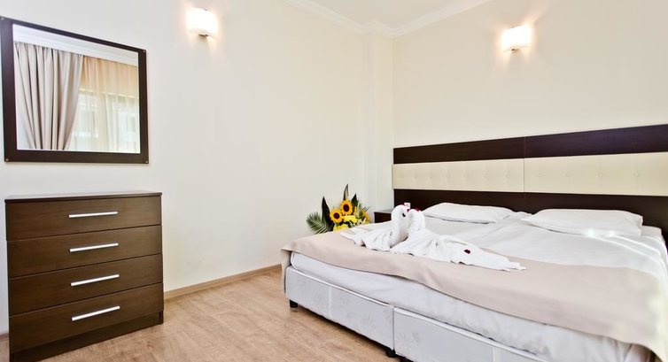 Ну начну с общего впечатления: за границей была впервые с двумя подругами!!!Долетели быстро, встретили нас в аэропорту Бургаса и сразу же привезли в отель. было где то около 12 часов ночи. Поселили быстро где то мин за 15!!!И сесюрити сразу же схватил наши чемоданы и отвел в левое крыло отеля, но как потом оказалось наш номер был в правом.вообщем где то пол часа он водил нас по отелю не зная где находиться наш номер, но это пол беды. на этом наши приключения только начинались!!!Номер был у нас неплохой, даже можно сказать хороший, правда не большой, не понравился только вид из окна, он выходил на пустырь!!!Сразу по приезду мы решили осмотреть отель но выти из номера нам не удалось, так как заклинел замок и мы не могли открыть дверь ключом, позвонить на ресепшен тоже не удалось, телефон там висел для красоты, ну мы и стали кричать что бы нас кто то выпустил!!!Минут через 15 соседи позвали с ресепшена и нас попытались открыть, но попытка была не удачной, замок не работал!так в номере мы просидели до 4 утра с дырлящей болгаркой и дрелью, слесари пытались спилить замок, и когда это у них получилось, моей злости не было придела!!!эти ремонтники еще хотели что бы мы подождали пока они поставят замок, а потом мы лягли спать....но терпение моё лопнуло и не ресепшене всем было "жарко"...нас переселили в другой номер в апартаменты и дали ключ для бесплатного пользования Wi-Fi, что бы мы не возмущались!!!Номер был у нас шикарный две большие комнаты, мини кухня, огромный балкон с выходом с обеих комнат с видом на весь отель и на море!!!Там мы прожили почти до самого отьезда, в предпоследний день нас пересилили в соседний номер(тоже апартаменты), так как пропала вода, но как потом оказалось ее отключили специально и вечером там жили уже другие отдыхающие(друзья хозяина отеля) а его номер был соседний!!!!но это не столь важно. не смотря на это все, отдых у нас был просто отличный!!!!!Персонал отеля очень приветливый. особенно бармены на лобби баре...хотя за эти 10 дней нас знал весь персонал)))