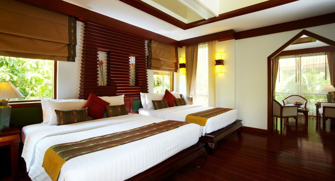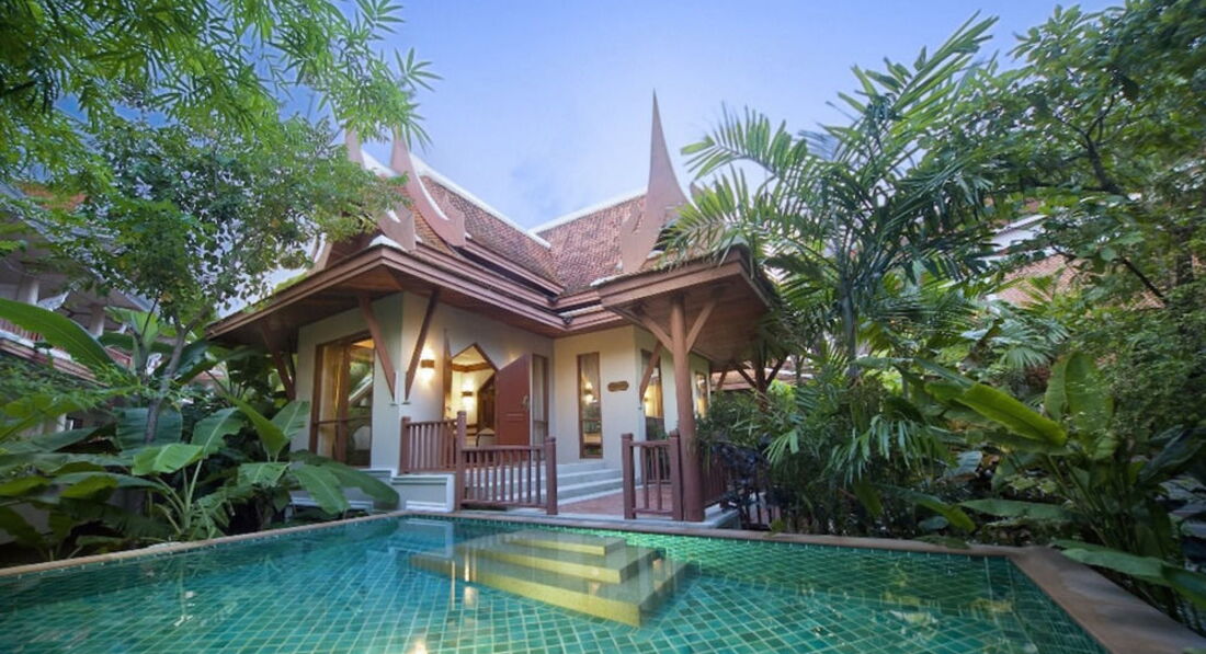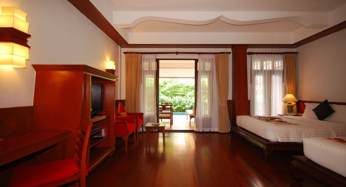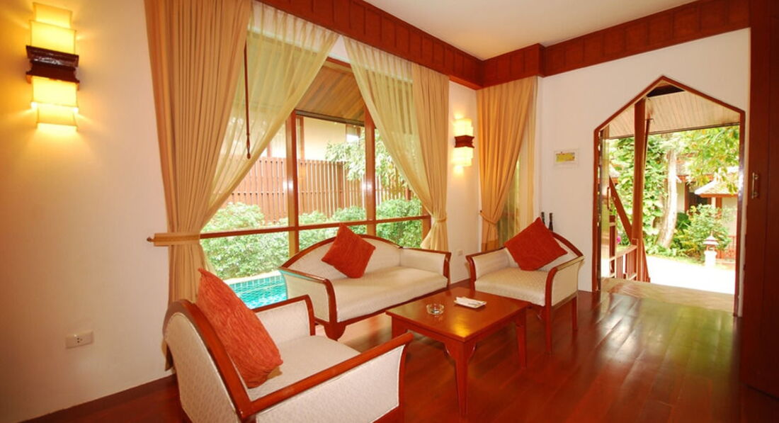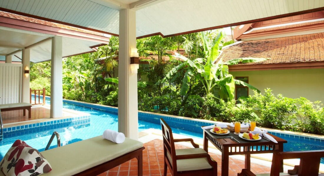 Очень приятный отель. Красивая зеленая территория с домиками в тайском стиле. Отель направлен на отдых семей с детьми. Дети до 6 лет – б/пл. Номера – большие по площади. Все виллы – с джакузи и бассейном.