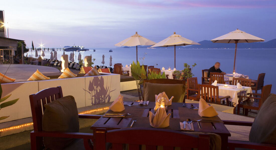 Сам отель расположен очень близко к аэропорту, поэтому добраться до него можно легко и быстро, нас довезли минут за 10-15. Сам отель стоит немного на отшибе от "тусовочных" мест, очень спокойный. За весь отпуск не видели ни одного ребенка и ни одного русского. Очень и очень красивая территория, кругом цветы, пальмы, зелень, есть гамак, шикарный бассейн, ну и конечно.. Сиамский залив. Номер был на первом этаже с выходом к бассейну (маленький бассейн вдоль номеров), сам номер - просто шикарный, две большие кровати, тумба, кондиционер, стол, сейф, телевизор, стол и кресла; шкаф, холодильник и корзина для грязного белья в холле и душ/ванна. Теперь о еде :) У нас был включен только завтрак, на завтрак было все, чего только душа пожелает: омлеты, бекон, всяческие булочки, джемы, вегетарианский стол (овощи, зелень), фруктовые салаты, напитки. По вечерам обычно устраивались тематические вечеринки или столы: например пиратская вечеринка или ночь итальянской кухни Кстати, ресторан прямо на берегу - отличный вид. Если захотите перекусить - недалеко множество кафешек и ресторанов, на внешний вид - не смотрите - смело идите в любой - вкусно и недорого, обед на двоих - 300-400 бат. Кроме того, рядом есть два супермаркета, там можно купить фрукты, напитки и много любопытного Кроме этого есть спортзал, свой СПА (очень советуем - там чуть дороже, но это того стоит). Персонал - очень приветливый, вежливый, огромное им спасибо. По вечерам нам приносили цветы и зажигали ароматические свечи, мелочь, а приятно; уборку номера ни разу не застали - всегда в наше отсутствие! В общем - советуем!!!