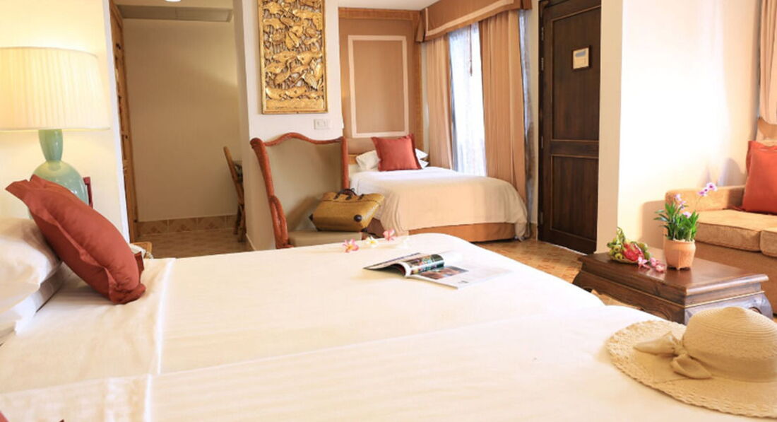 Жили в бунгало прямо напротив бассейна. Бассейн очень старый и травматичный. Кафель откалывается чуть ли не каждый день, что привело к порезам колен и ступней. Пляж ( если его можно так назвать) практически не убирается. Лежаков на пляже мало. Чтобы спуститься на песок нужно идти по корягам. Номера убирают хорошо, но не во время. Приходя в 15:00 номер не убран. Питание утром отвратительное, хотя очень любим тайскую кухню. Единственное хорошее впечатление оставил ресторан Kingfisher напротив отеля и бесплатный WiFi. Имели счастье из-за дождя ужинать в ресторане при отеле. Отдали в три раза дороже, чем в обычном ресторане. Остались очень не довольны пищей, ее размерами и способами ее приготовления. Рядом с отелем мало развита инфраструктура, почти нет баров и ресторанов. В Тайланде мы уже седьмой раз и для себя сделали вывод, что в этот отель мы не поедем и не рекомендуем.