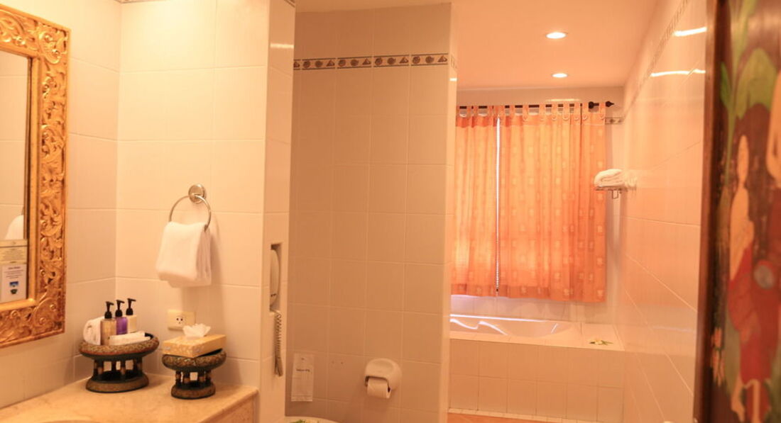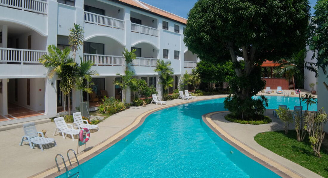 Отель чистый, ухоженный. Правда, внешне выглядит не очень - старый и немного облезлый. Но внутри территория очень зеленая, с дорожками, цветами, там же растут бананы, летают бабочки, даже видели белок. На территории есть 2 бассейна, лежаков мало. Мало русских, в основном иностранцы из европы. Тихо, поют птички, играет музыка, благодать. Напротив отеля пара ресторанов, кушали в Кинг Фишер - было вкусно. Также есть пара массажных салонов. Рядом есть family mart. Пляж есть, но он узкий и немного грязноват, мало лежаков и зонтиков. В отеле есть вай-фай в номерах.